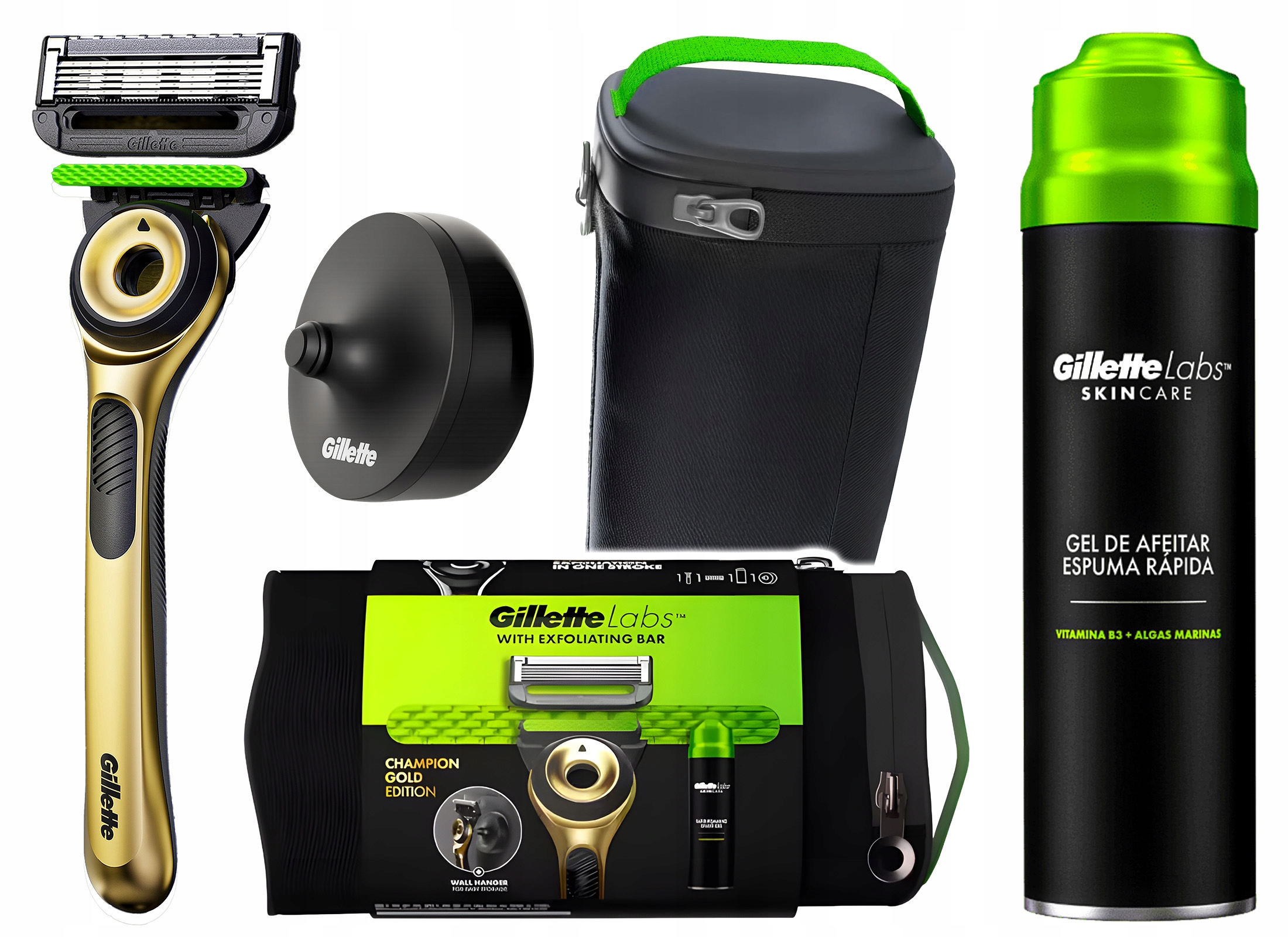 Maszynka GILLETTE Labs Champion Gold Edition + żel do golenia 198 ml + uchwyt Gillette 3M + etui podróżne ️🛡️– gładkie i komfortowe golenie