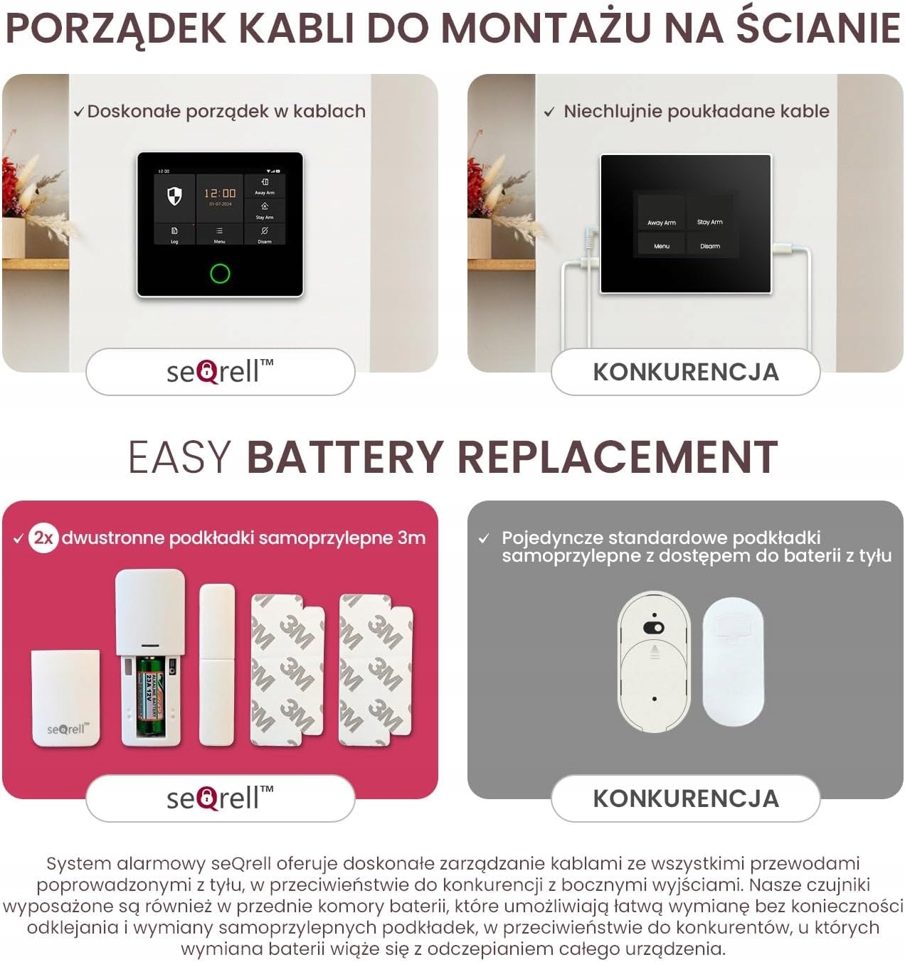 W zestawie: 1 x moduł główny z ekranem 4,3", 5 x czujniki otwarcia, 1 x czujnik ruchu PIR, 1 x syrena zewnętrzna, 2 x pilot zdalnego sterowania, 1 x kabel USB, akcesoria montażowe/mały śrubokręt, 2 x naklejka okienna seqrell i skrócona instrukcja obsługi. INSTRUKCJA OBSŁUGI W JĘZYKU POLSKIM.
