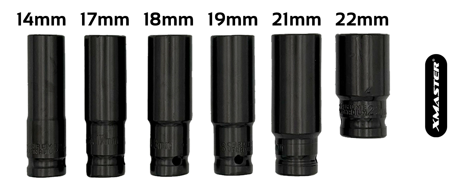 W komplecie z kluczem udarowym otrzymujesz 6 praktycznych nasadek długich w najczęściej używanych rozmiarach: