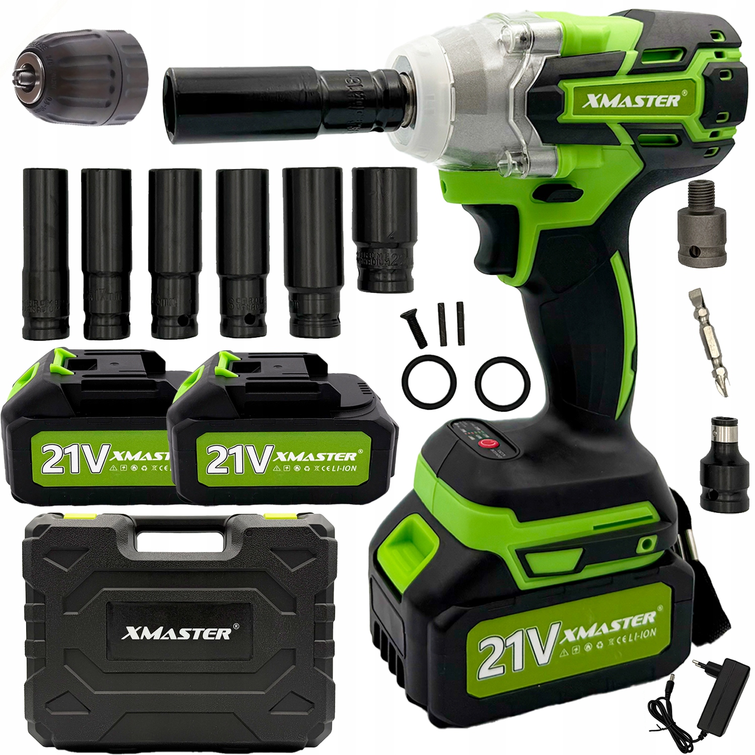✅ Bogaty zestaw akcesoriów – 6 długich nasadek (14, 17, 18, 19, 21, 22 mm), adapter 1/2" → HEX oraz bit do wkrętarki, wszystko gotowe do użycia.