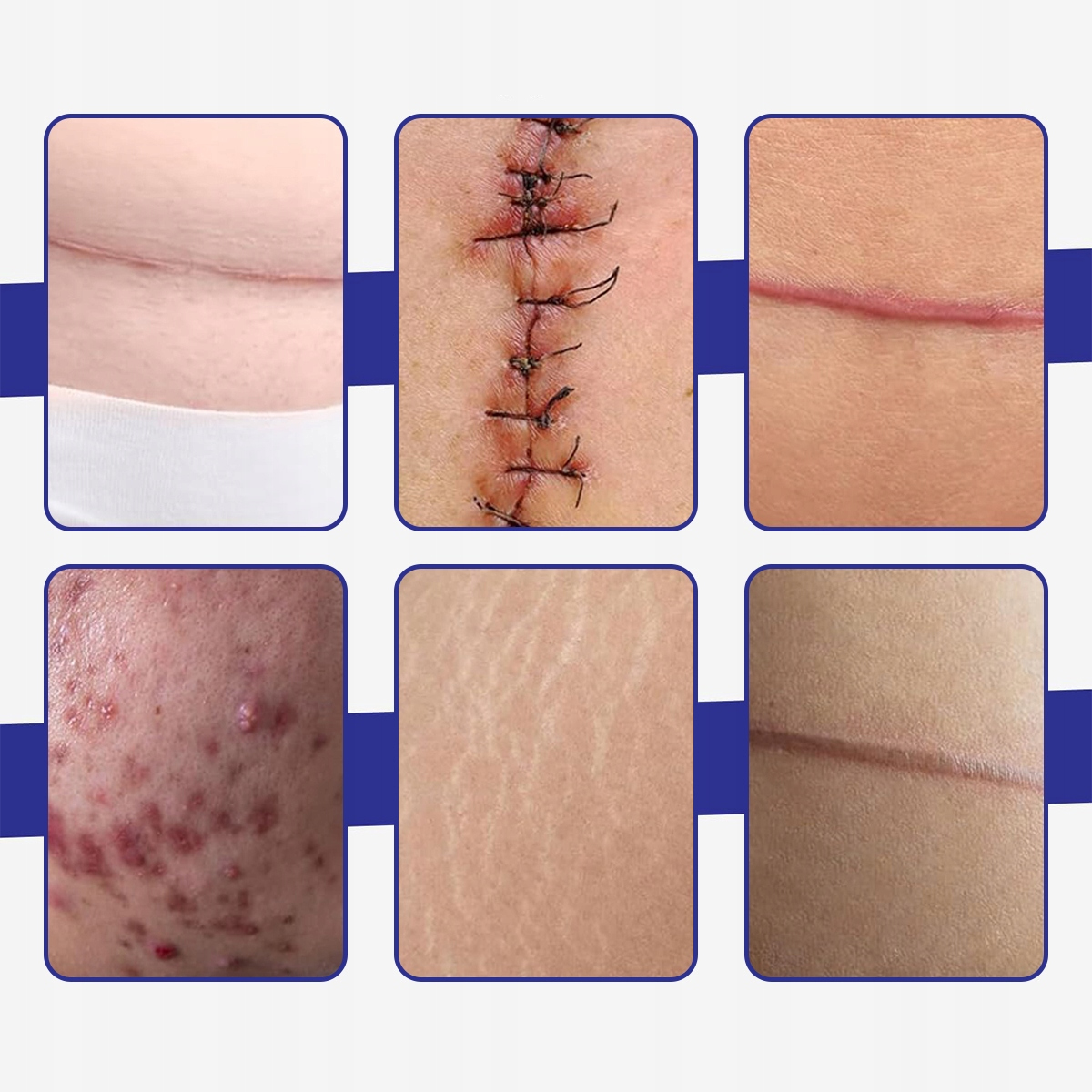 Zwalczają wszystkie rodzaje blizn – blizny pooperacyjne, po cesarskim cięciu, potrądzikowe, przerostowe. Stymulują naturalną barierę ochronną skóry, zapewniając optymalną ochronę i widocznie redukując blizny.