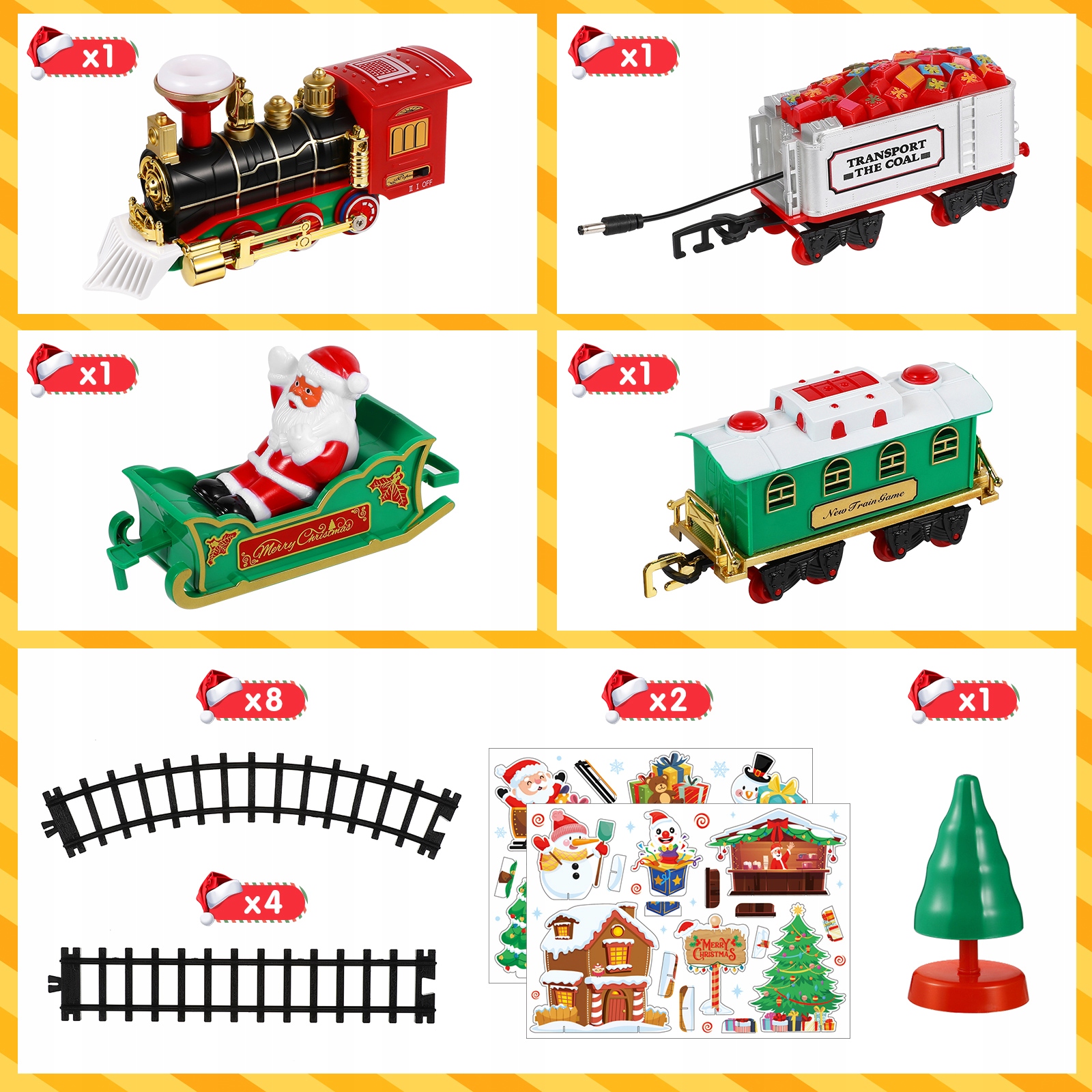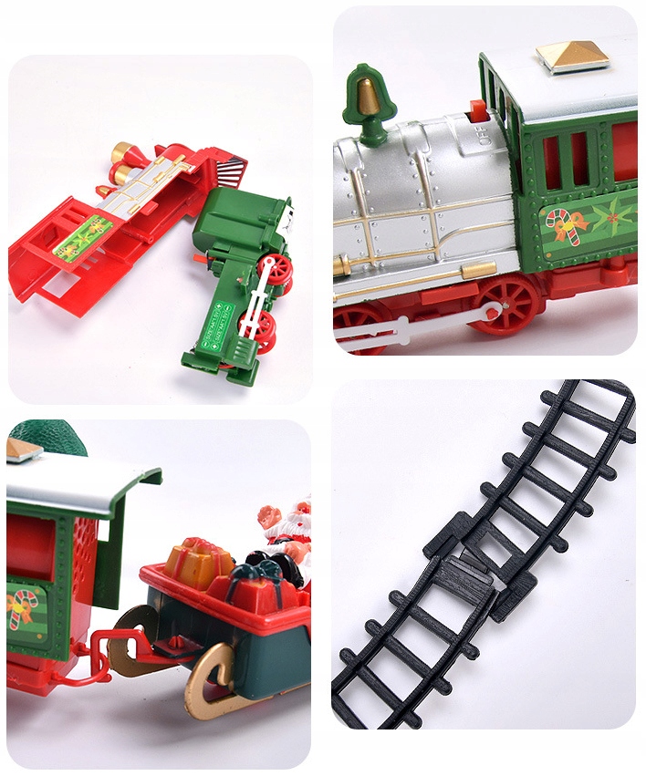 • Spraw, aby Boże Narodzenie było bardziej niezapomniane dla Twoich dzieci dzięki temu świątecznemu pociągowi. Uroczy kształt, realistyczny dźwięk i światło, realistyczny dym z lokomotywy parowej, z których wszystkie są przeznaczone do zabawnej i ekscytującej zabawy. Maluch będzie się bawił przez wiele godzin podczas samodzielnego składania torów i obserwowania, jak jedzie pociąg. Świetny pomysł na prezent dla twoich chłopców, dziewcząt, dzieci, aby cieszyć się Happy Christmas.