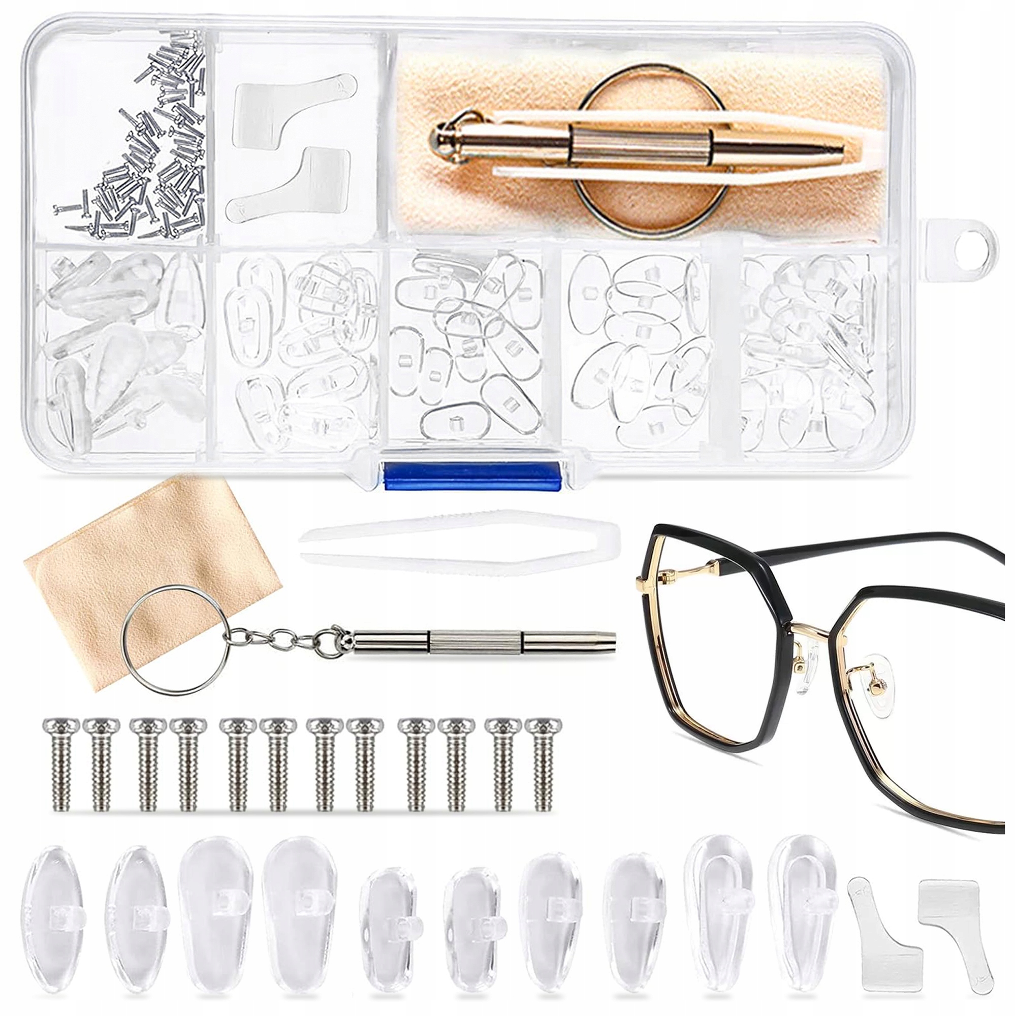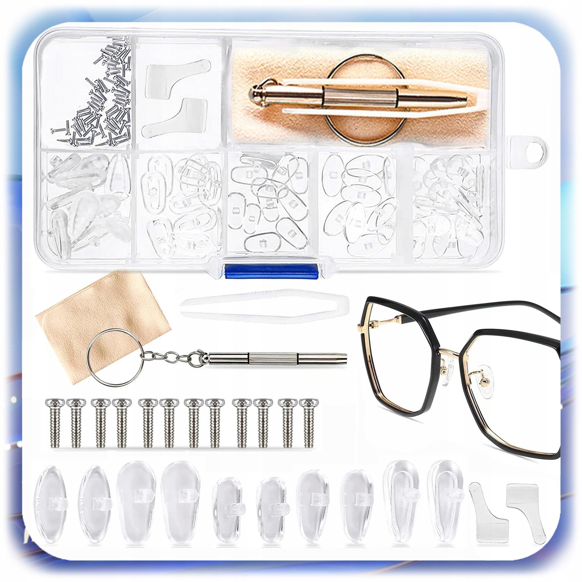 Zestaw pasuje do większości typów okularów, w tym korekcyjnych, przeciwsłonecznych oraz okularów do czytania. Bez względu na markę czy model, znajdziesz tu odpowiednie elementy.