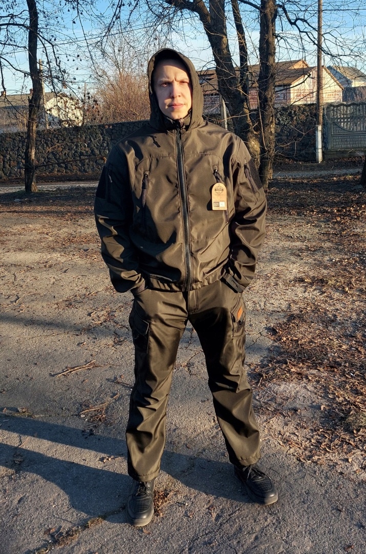 Komplet uszyty jest z materiału typu Softshell DEWSPO (Duspo) i ocieplony jest mikropolarem. Materiał Duspo charakteryzuje się wysoką gęstością, nie ulega szybkiemu zużyciu i jest odporny na różne uszkodzenia, wytrzymuje mrozy, nie blaknie na słońcu nawet po wielu praniach. Ponadto jest wodoodporny doskonale przy tym przepuszczając powietrze.