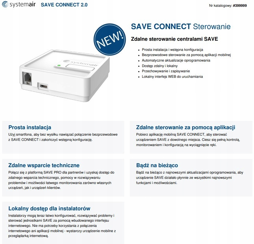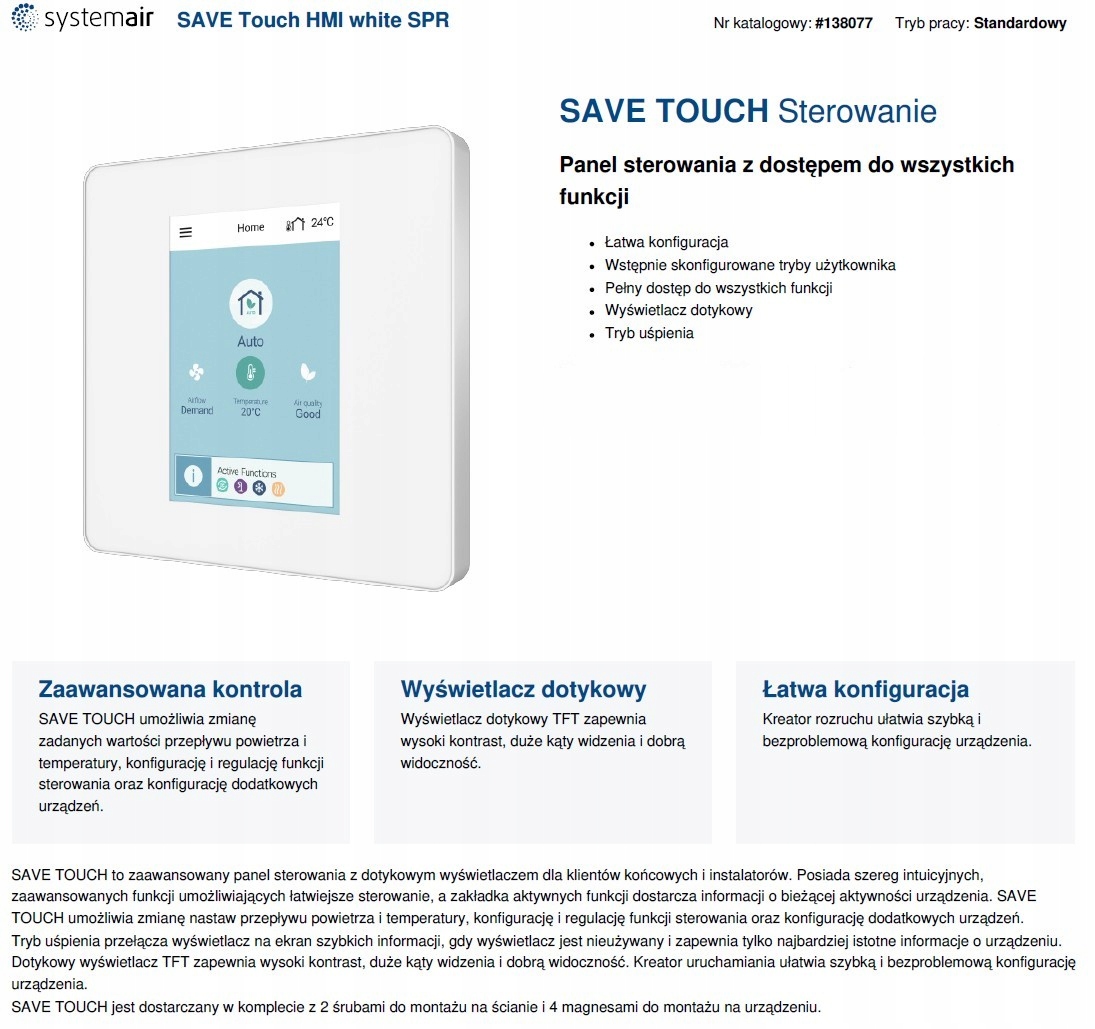 • SAVE TOUCH – podnieś poprzeczkę dzięki panelowi SAVE TOUCH. Posiada on ekran dotykowy, który pozwala kontrolować wszystko i odzwierciedla funkcjonalność aplikacji SAVE CONNECT. Możesz zobaczyć informacje, takie jak przepływ powietrza, temperatura oraz jakość powietrza wewnętrznego.
