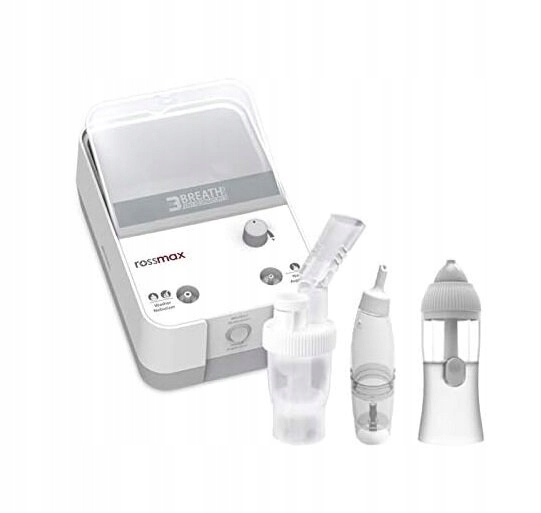 Inhalator 3w1 Rossmax NK1000 to innowacyjne urządzenie medyczne, które łączy w sobie funkcje nebulizatora, irygatora do nosa oraz aspiratora do nosa. Jest to kompletny system przeznaczony do udrażniania nosa oraz leczenia dolnych dróg oddechowych, zapewniający kompleksową pielęgnację układu oddechowego dla całej rodziny.