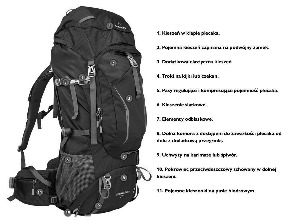 ⚙️ PLECAK MATTERHORN 70 RENOMOWANEJ MARKI BERGSON JEST NOWOCZESNYM SPOJRZENIEM NA PLECAKI TREKINGOWE. POJEMNOŚĆ PLECAKA TO 70 LITRÓW, POSIADA ON KOMIN, KTÓRY ZWIĘKSZA JEGO POJEMNOŚĆ O KILKA LITRÓW W MIARĘ POTRZEB. PLECAK POSIADA NOWOCZESNY STELAŻ WEWNĘTRZNY W POSTACI ULTRA LEKKIEGO PRĘTU, KTÓRY DOSKONALE PROFILUJE PLECAK DO ANATOMICZNEGO KSZTAŁTU PLECÓW UŻYTKOWNIKA. SYSTEM TEN JEST BARDZO DOBRZE WENTYLOWANY. POZWALA NA PŁYNĄ REGULACJĘ WYSOKOŚCI SZELEK DZIĘKI CZEMU MOŻLIWE JEST DOSKONAŁE DOPASOWANIE DO KAŻDEGO TYPU SYLWETKI. W PASIE BIODROWYM ZNAJDUJĄ SIĘ DWIE KIESZENIE ZAPINANE NA ZAMEK. PAS PIERSIOWY POSIADA GWIZDEK W KLAMRZE SPINAJĄCEJ. MATTERHORN 70 MA MOŻLIWOŚĆ DOSTĘPU OD DOŁU PLECAKA ORAZ MOŻNA GO PODZIELIĆ PRZESŁONĄ ZAPINANĄ NA ZAMEK TAK BY STAŁ SIĘ PLECAKIEM DWUKOMOROWYM. PLECAK POSIADA PASKI KOMPRESUJĄCE BOCZNE DZIĘKI CZEMU MOŻNA WYREGULOWAĆ JEGO POJEMNOŚĆ W ZALEŻNOŚCI OD WIELKOŚCI EKWIPUNKU. W GÓRNEJ KLAPIE PLECAKA ZNAJDUJĄ SIĘ DWIE KIESZENIE ZEWNĘTRZNA I WEWNĘTRZNA. PLECAK PRZYGOTOWANY JEST POD SYSTEM H2O, POSIADA ELEMENTY ODBLASKOWE ORAZ TROKI NA KIJE TREKINGOWE. POSIADA ON RÓWNIEŻ DWIE BOCZNE I JEDNĄ FRONTALNĄ KIESZEŃ SIATECZKOWĄ. DODATKOWO MATTERHORN 70 MA ZAPINANĄ NA ZAMEK KIESZEŃ PRZEDNIĄ. W WZMACNIANYM DNIE PLECAKA ZNAJDUJE SIĘ POKROWIEC PRZECIWDESZCZOWY. MATTERHORN 70 POCHODZĄCY Z NAJNOWSZEJ KOLEKCJI PLECAKÓW BERGSONA JEST ŚWIETNĄ PROPOZYCJĄ ŁĄCZĄCĄ POWIEW NOWOCZESNOŚCI ZE SPRAWDZONYMI ROZWIĄZANIAMI TEGO PRODUCENTA. ⚙️