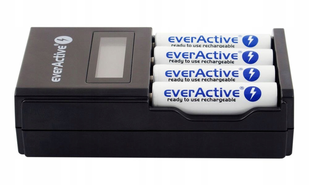 Ładowarka everActive NC-450 posiada 4 w pełni niezależne kanały ładowania. Umożliwia szybkie ładowanie od 1 do 4 ogniw Ni-MH o dowolnej pojemności i wielkości (paluszki R03 AAA / R6 AA), w dowolnej konfiguracji.