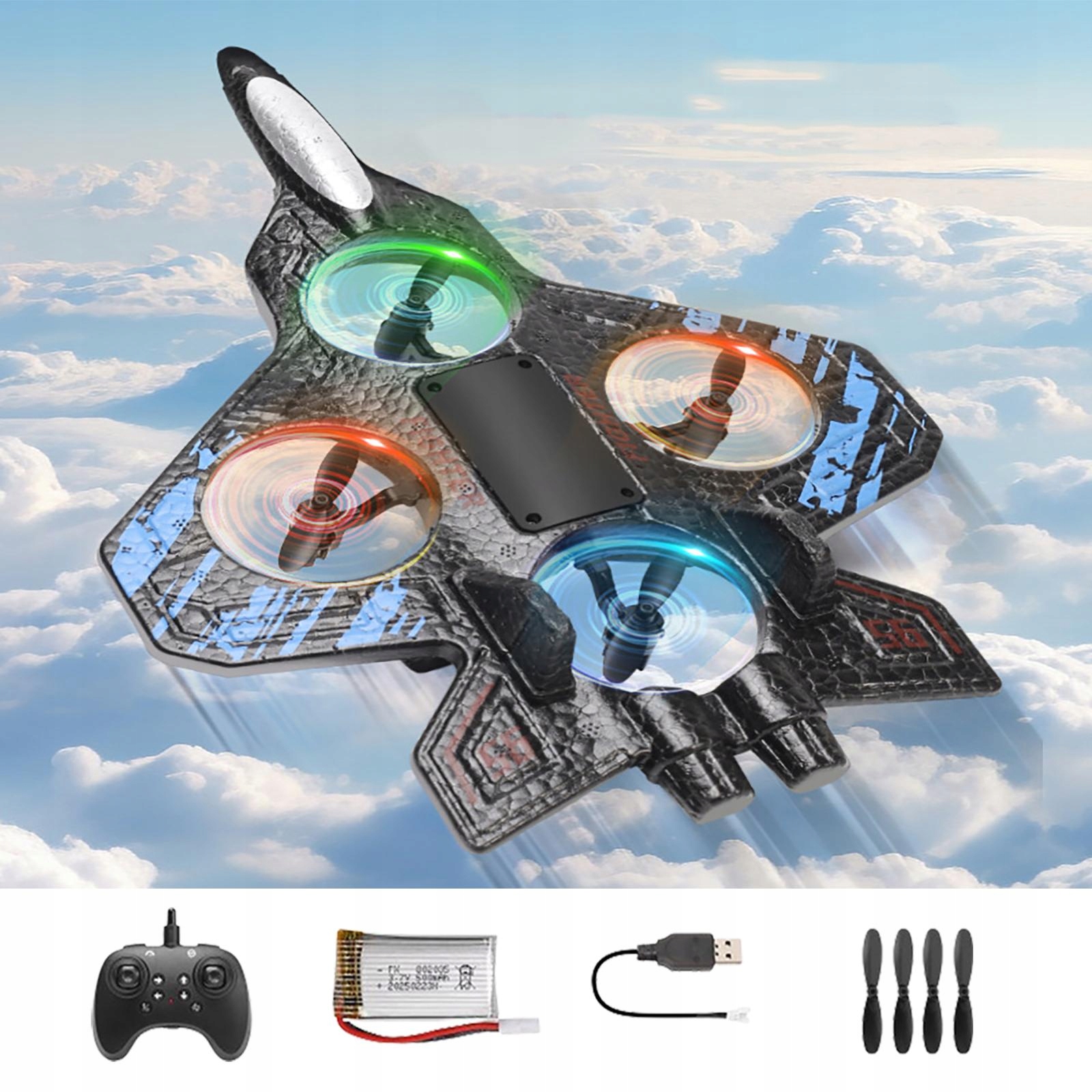 [360° Stunts & Smart Hovering]Wykonaj porywające przewroty o 360°, wciągające okrągłe ślizgacze i 1 klucz / lądowanie. Inteligentne utrzymywanie wysokości utrzymuje samolot stabilnie w połowie , podczas gdy tryby dostosowują się do poziomu umiejętności