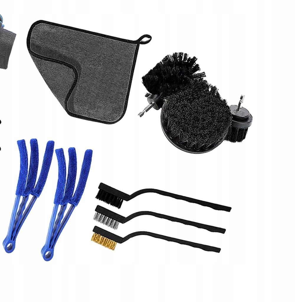 16 szt. Zestaw zawiera 4 różnej wielkości szczotki wiertarskie, 5 szczotek do detali, 2 szczotki, 3 szczotki druciane, 1 mycie i 1 luksusowy ręcznik.