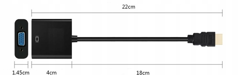 Кабель позволяет воспроизводить изображение с компьютера / ноутбука, оснащенного HDMI на дисплей, оснащенный разъемом D-SUB, т. е. например.: