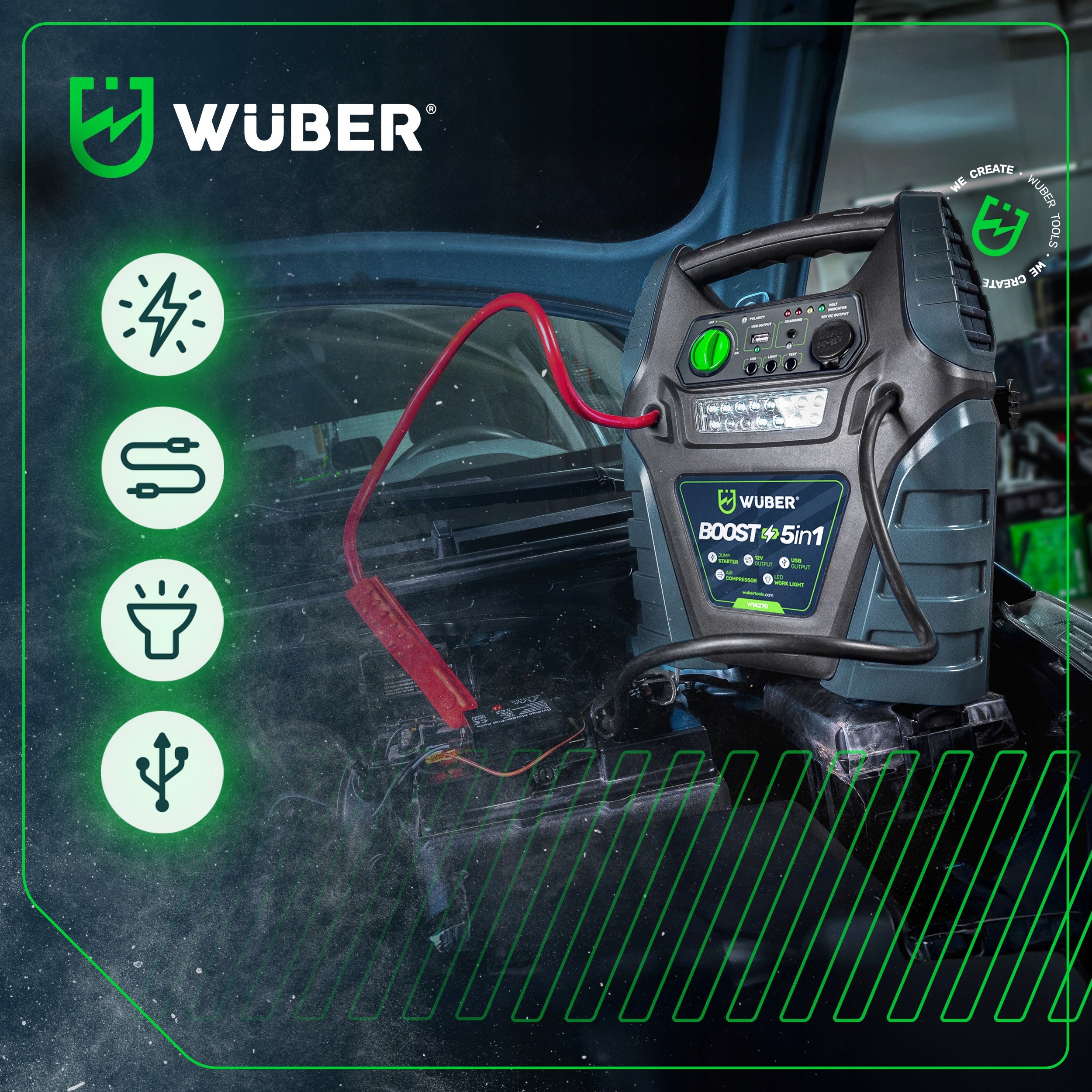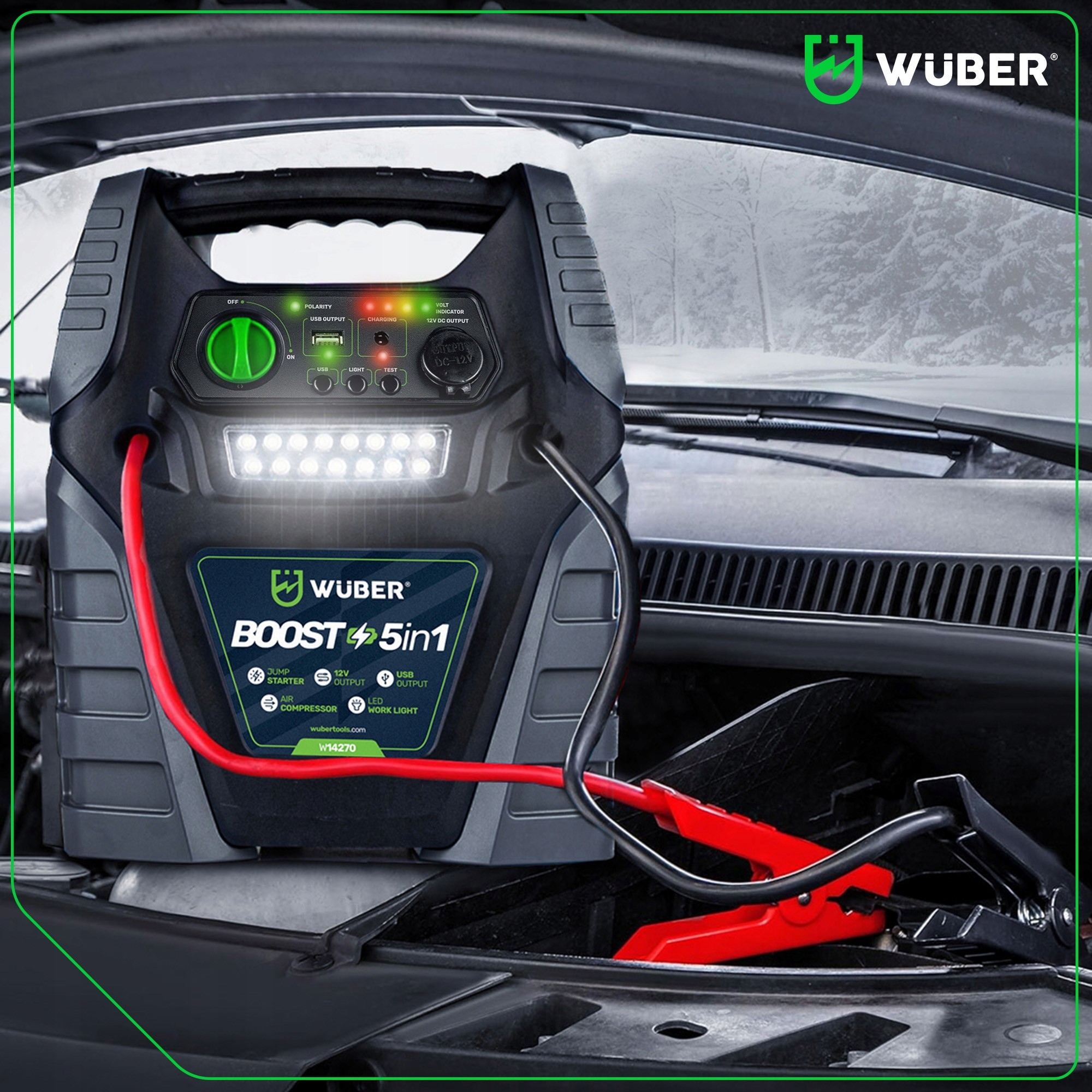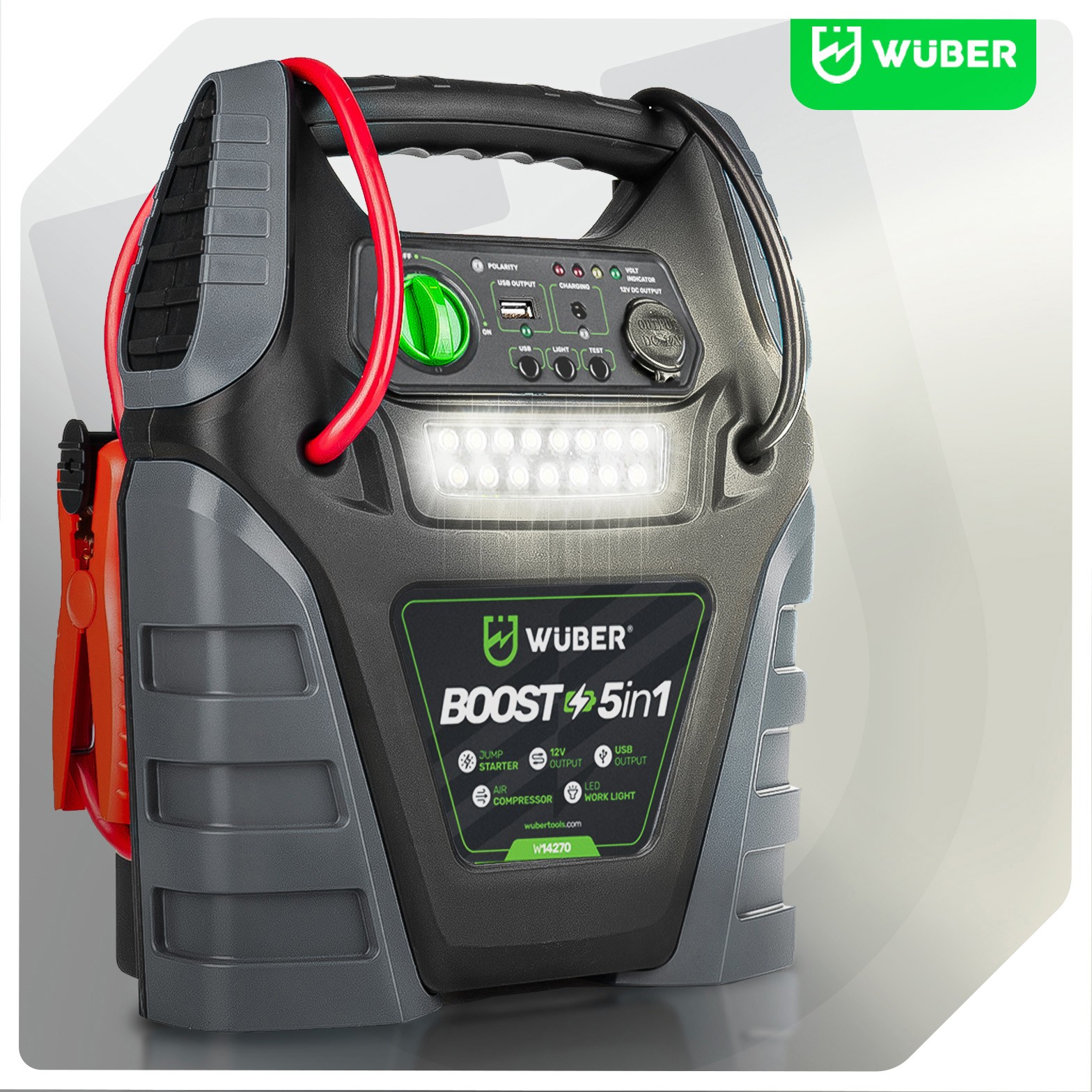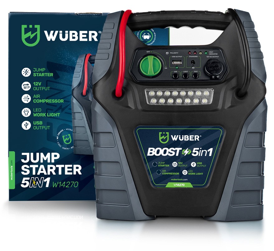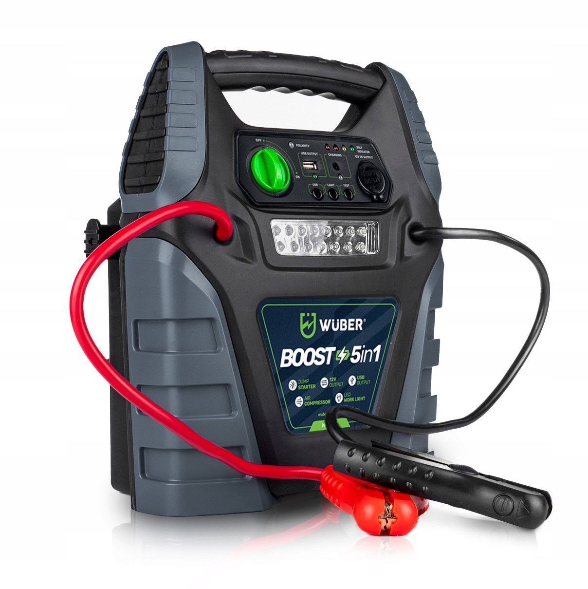 ✅ 5w1 ► Prostownik, rozruch, powerbank, kompresor i latarka w jednej obudowie.