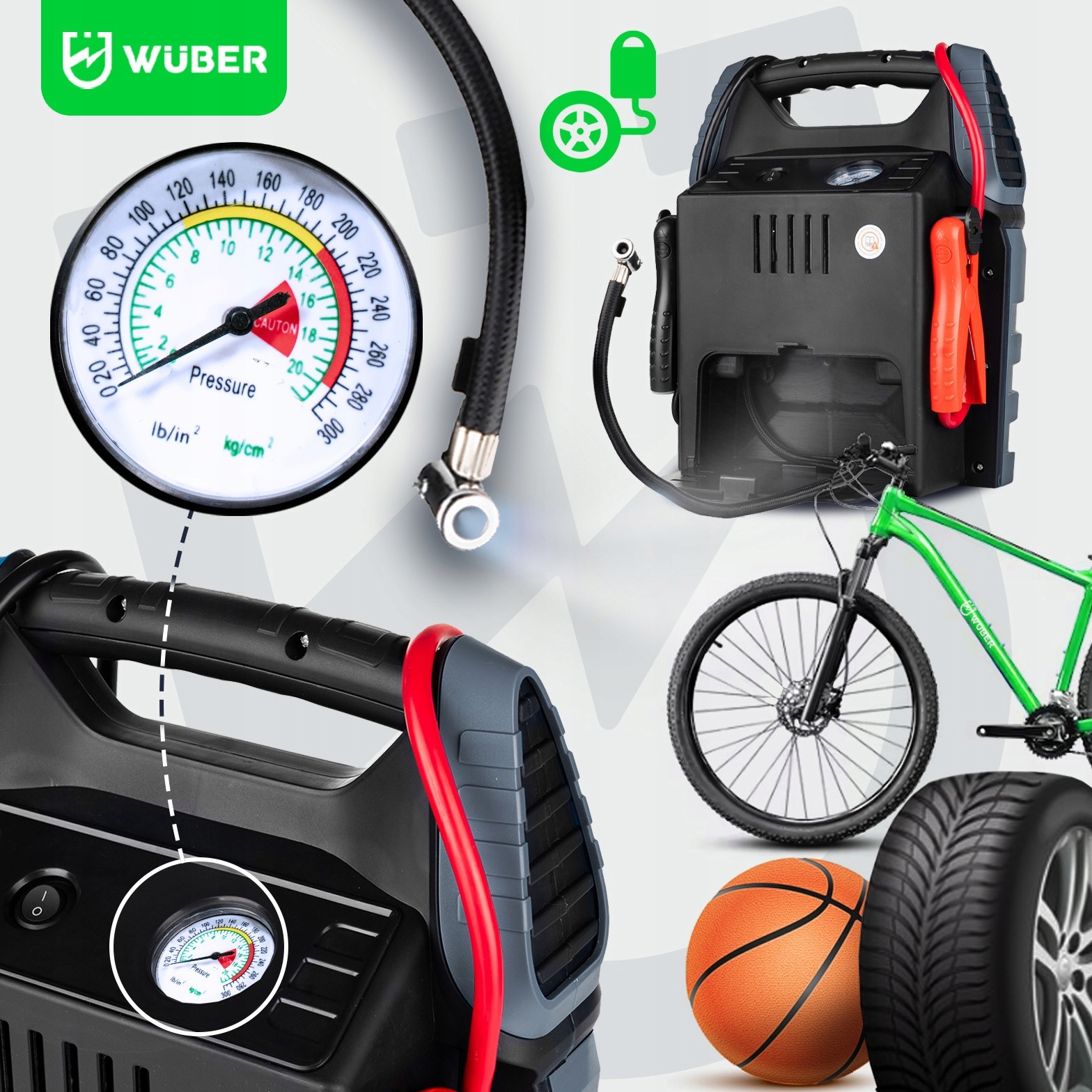 ✔️ Funkcja kompresora jest niezwykle praktyczna - wystarczy mieć przy sobie starter, aby napompować: