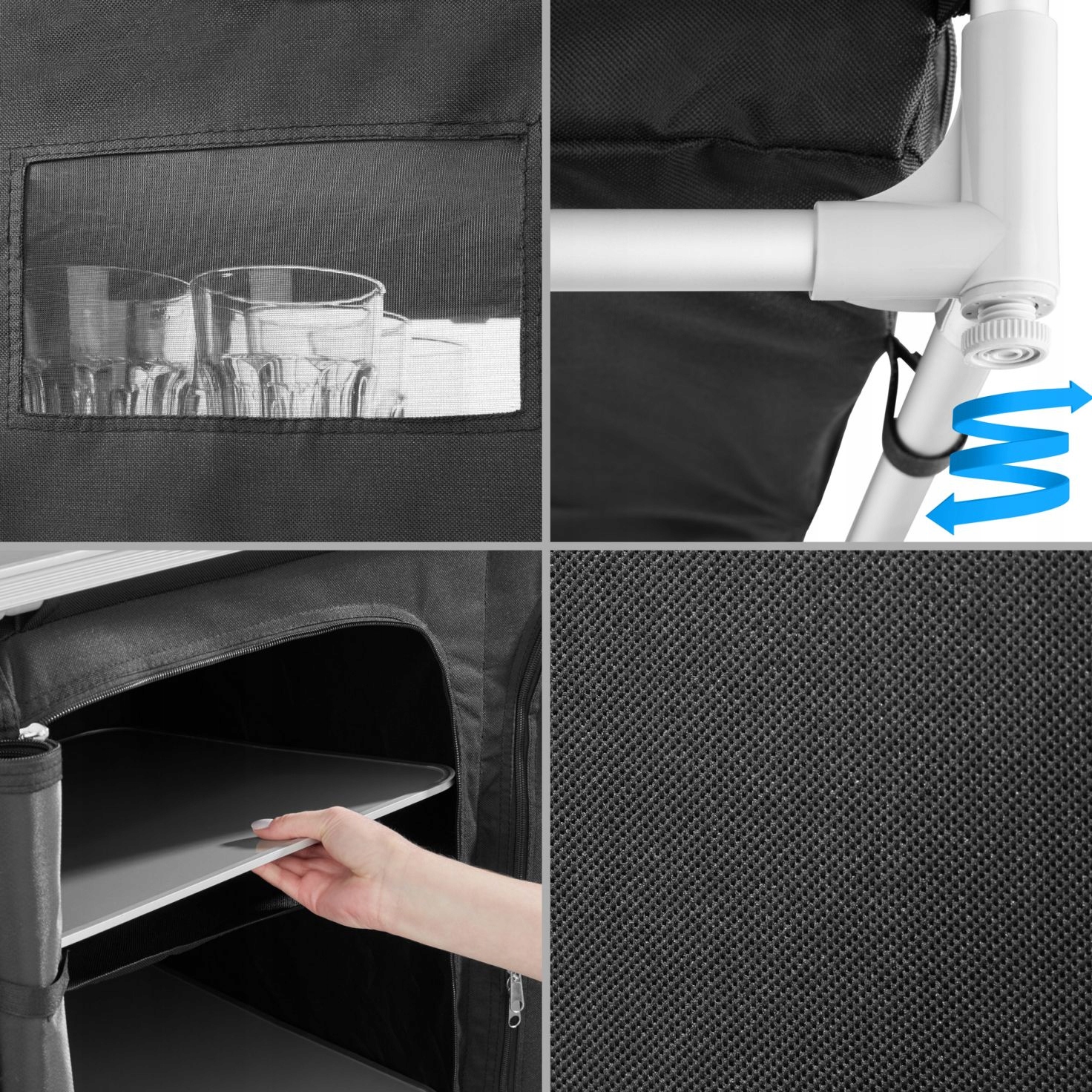 Materiał: aluminium, płyta wiórowa (MDF), poliester (Oxford)