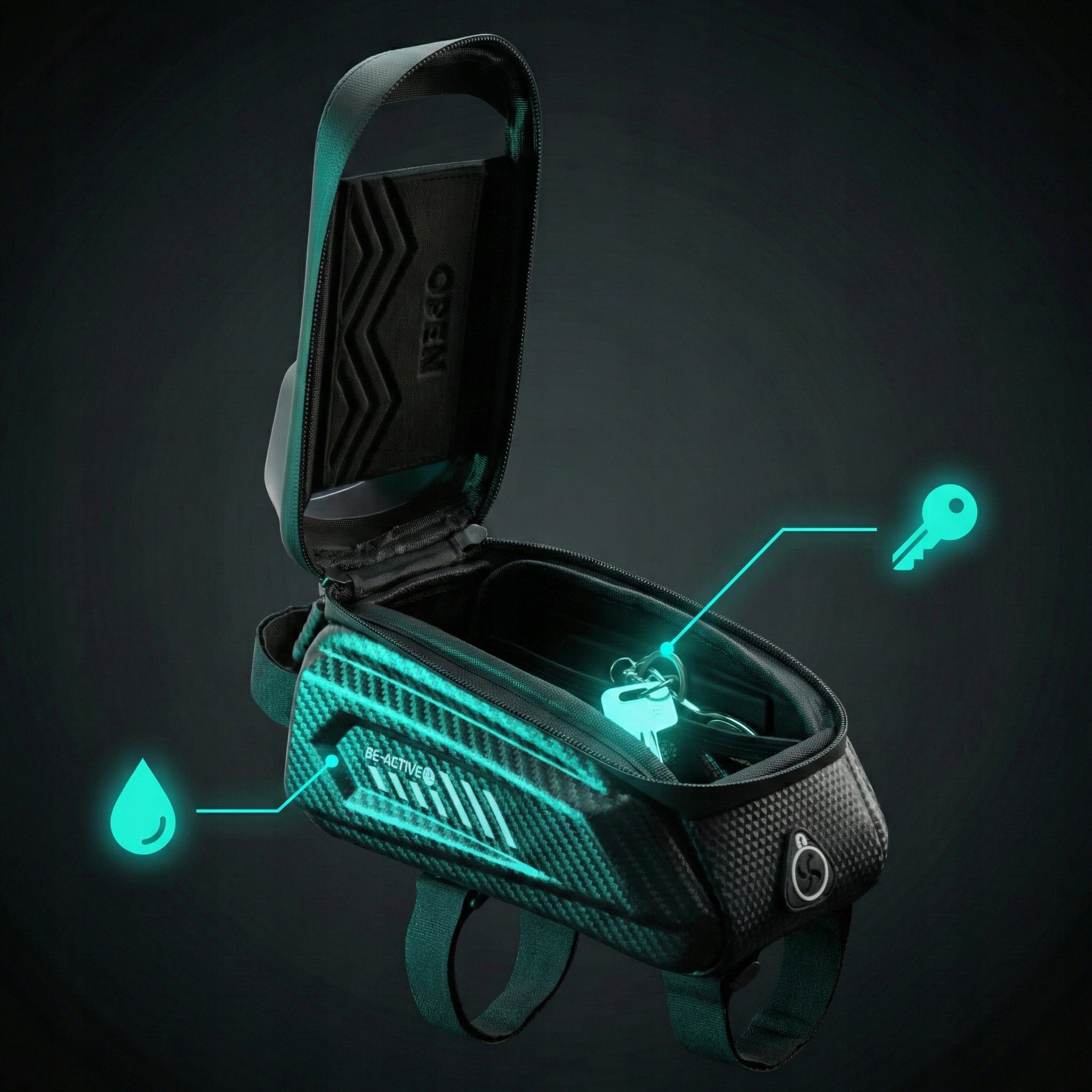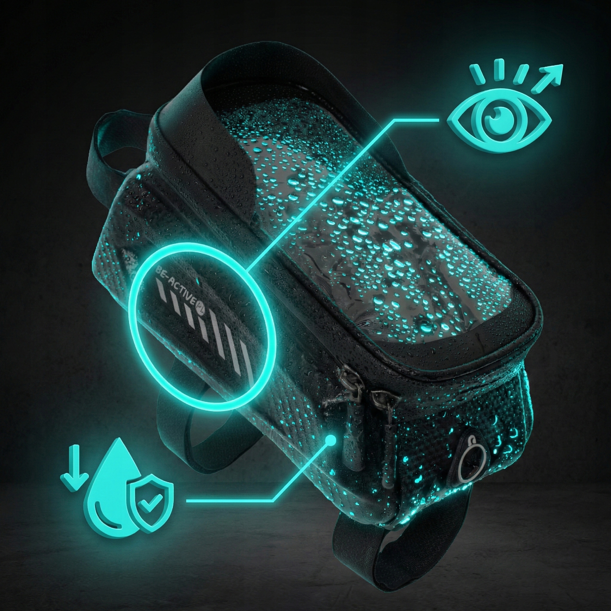 Dzięki połączeniu materiałów EVA i poliuretanu torba jest w pełni wodoodporna, a uszczelnione zamki i precyzyjne wykończenie chronią zawartość nawet podczas ulewnej pogody.