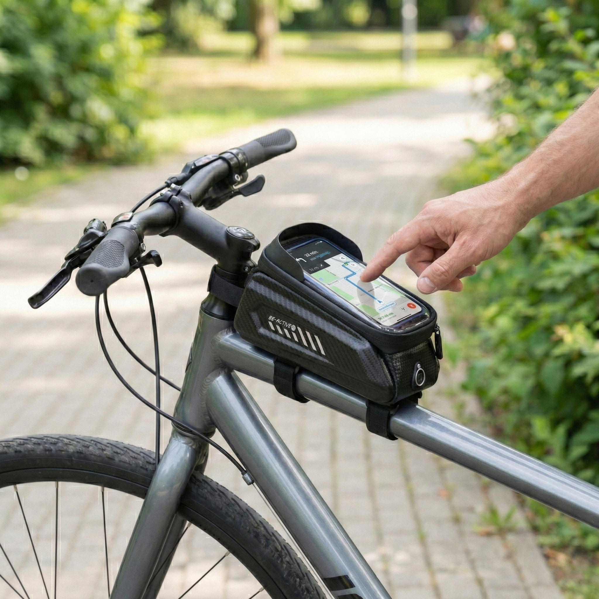 Postaw na torbę rowerową z uchwytem na smartfon, która zapewnia pełną ochronę, łatwy dostęp do telefonu i miejsce na najpotrzebniejsze rzeczy.