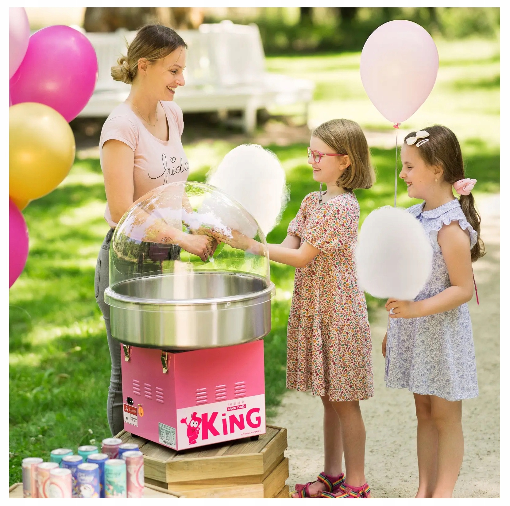 to połączenie szybkiej produkcji z atrakcyjnym i higienicznym stanowiskiem sprzedaży. Model ten pozwoli sprawnie przygotować watę dzięki wysoce wydajnemu elementowi grzewczemu o mocy 1200 W. Temperaturę i obroty głowicy włączysz oddzielnie za pomocą dwóch przełączników. Misa ze stali nierdzewnej o średnicy 52 cm nada się do przygotowywania dużych ilości waty cukrowej. Urządzenie do waty cukrowej Royal Catering będzie idealnym towarzyszem festiwali, parków rozrywki, kin, imprez ulicznych i wielu innych.