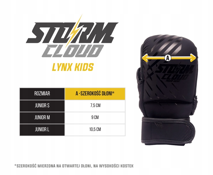 Topowa marka StormCloud prezentuje dziecięcą wersję bestsellerowych rękawic dziecięcych do MMA z serii LYNXraz dostępne w mniejszych wymiarach dostosowanych do potrzeb najmłodszych fighterów!