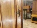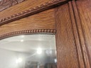 Szafa wykonana z litego drewna dębowego zdobiona elegancką snycerką, oraz sklejki zdobionej fornirem dębowym.