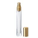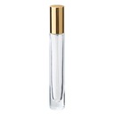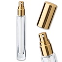 Bezbarwna szklana butelka o pojemności 10 ml z złotym atomizerem to idealne rozwiązanie do przechowywania perfum, mgiełek zapachowych, hydrolatów czy toników. Smukły kształt i eleganckie wykończenie sprawiają, że świetnie nadaje się zarówno do użytku domowego, jak i profesjonalnego.