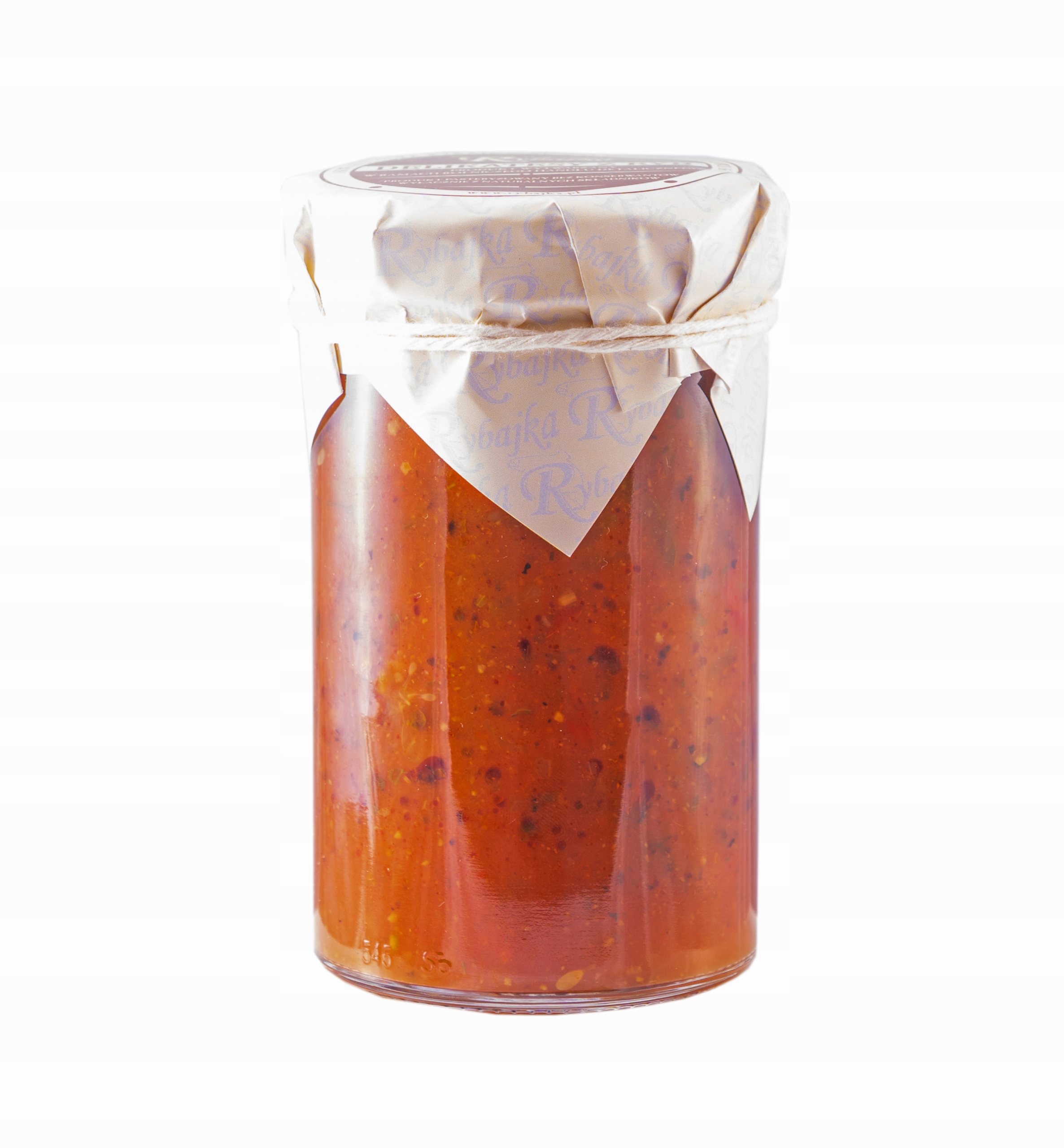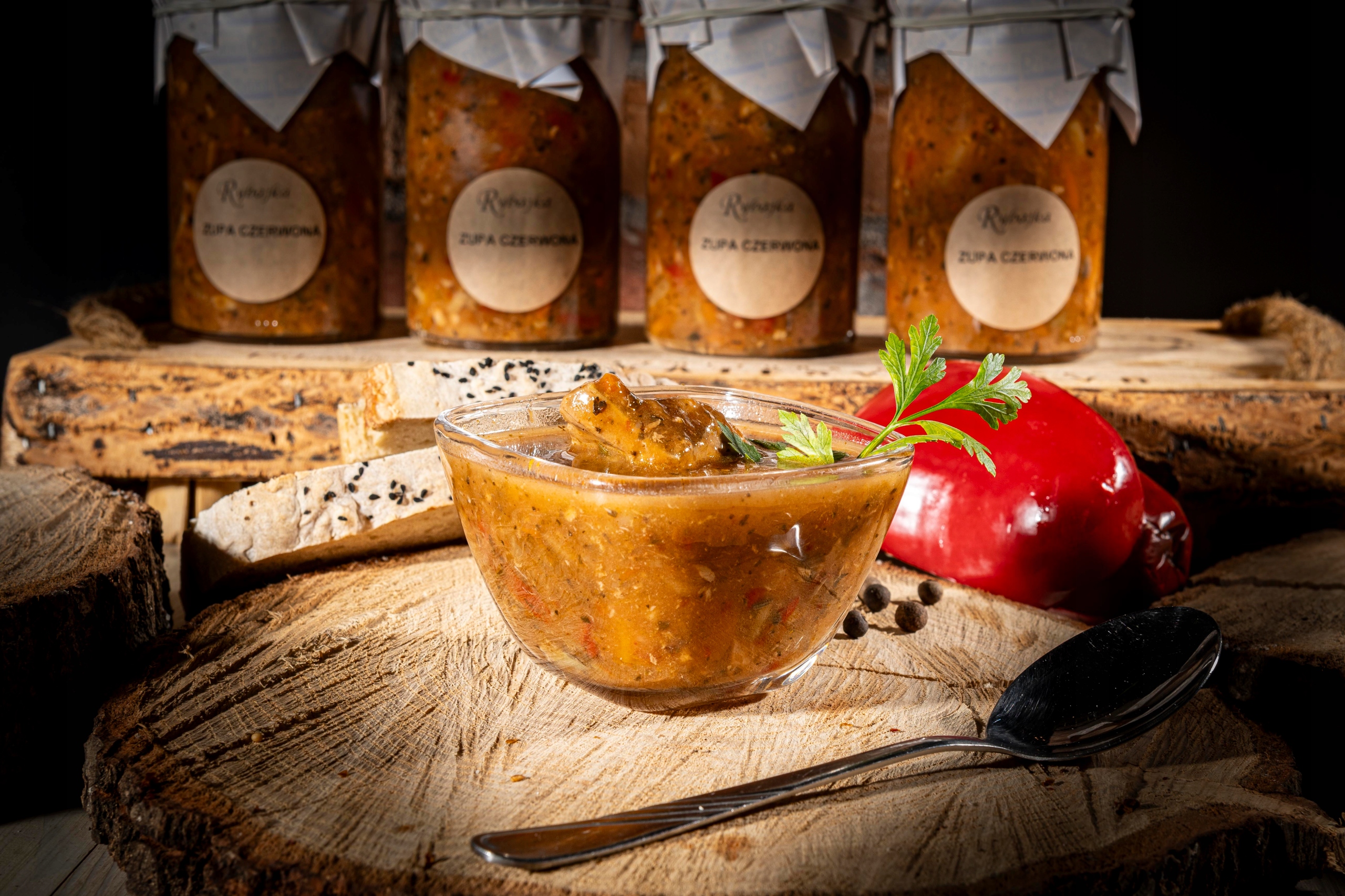 Firmowa zupa rybna Rybajka - w stylu węgierskim. Zupa zawiesista w stylu gulaszowej, z papryką, marchewką i kawałkami ryb słodkowodnych - głównie pstrąga i karpia. Zupa przygotowana na intensywnym wywarze z warzyw i ryb - wolnogotowanym, co gwarantuje uzyskanie bogatej zawartości naturalnego oleju rybnego i kolagenu. Zupa nie zawiera konserwantów - poddawana jest wyłącznie pasteryzacji. Zupa nie zawiera zagęstników, wzmacniaczy smaku, dodatku olei innych niż naturalnie pozyskane w trakcie przygotowywania wywaru w procesie wolnego gotowania.