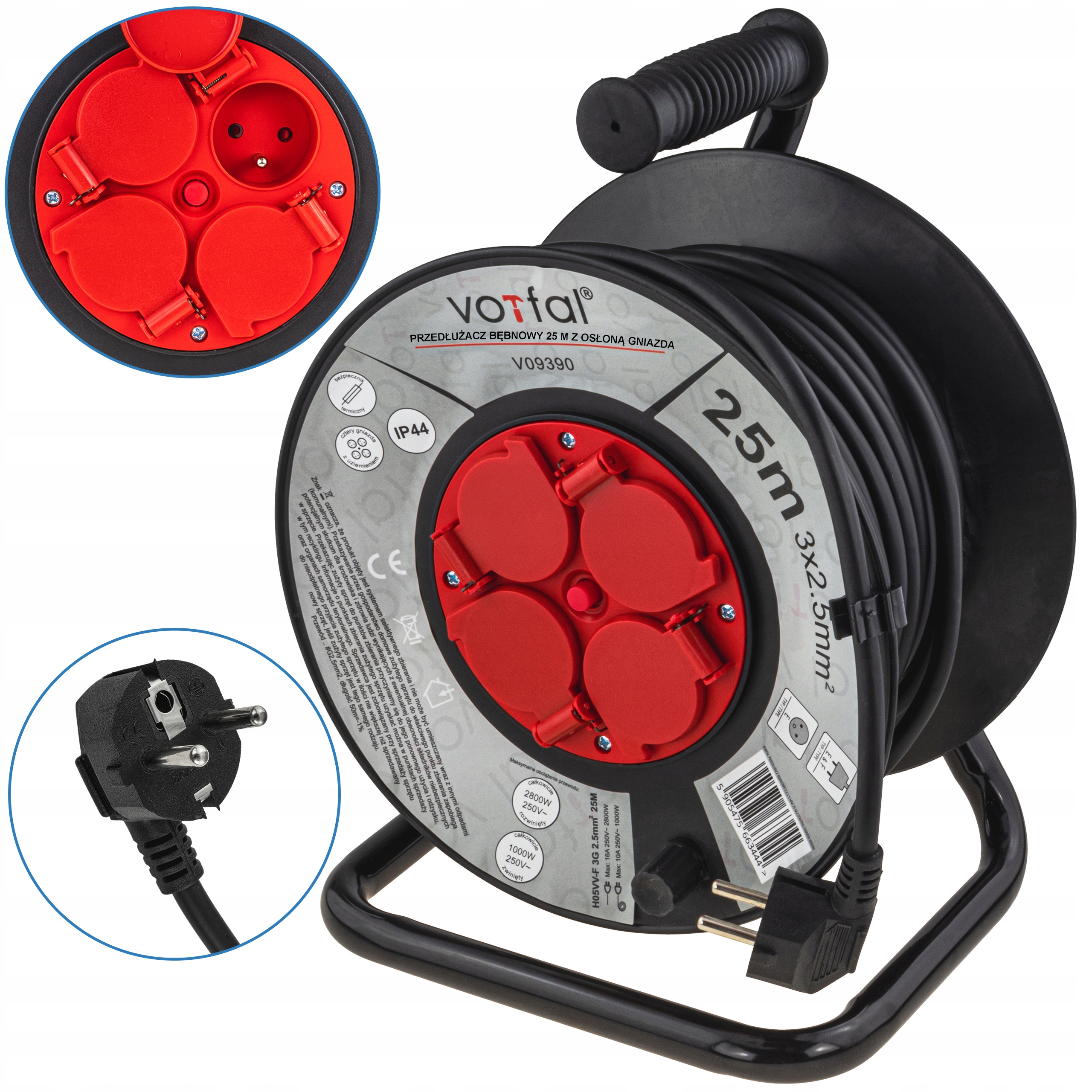 ✅ Solidny przewód 3x2,5 mm² (H05VV-F) – gwarancja stabilnego zasilania bez spadków napięcia.