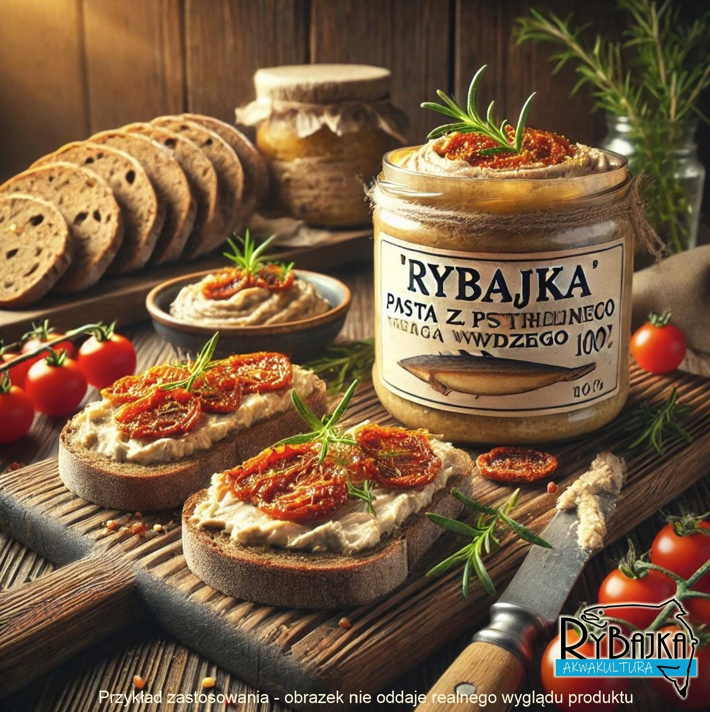 Pasta z pstrąga wędzonego - delikatna, wytrawna i bardzo smaczna składająca się z pstrąga wędzonego, suszonych pomidorów, mieszanki ziół i odrobiny majonezu. Idealny dodatek do dietetycznych kanapek lub tartinek.