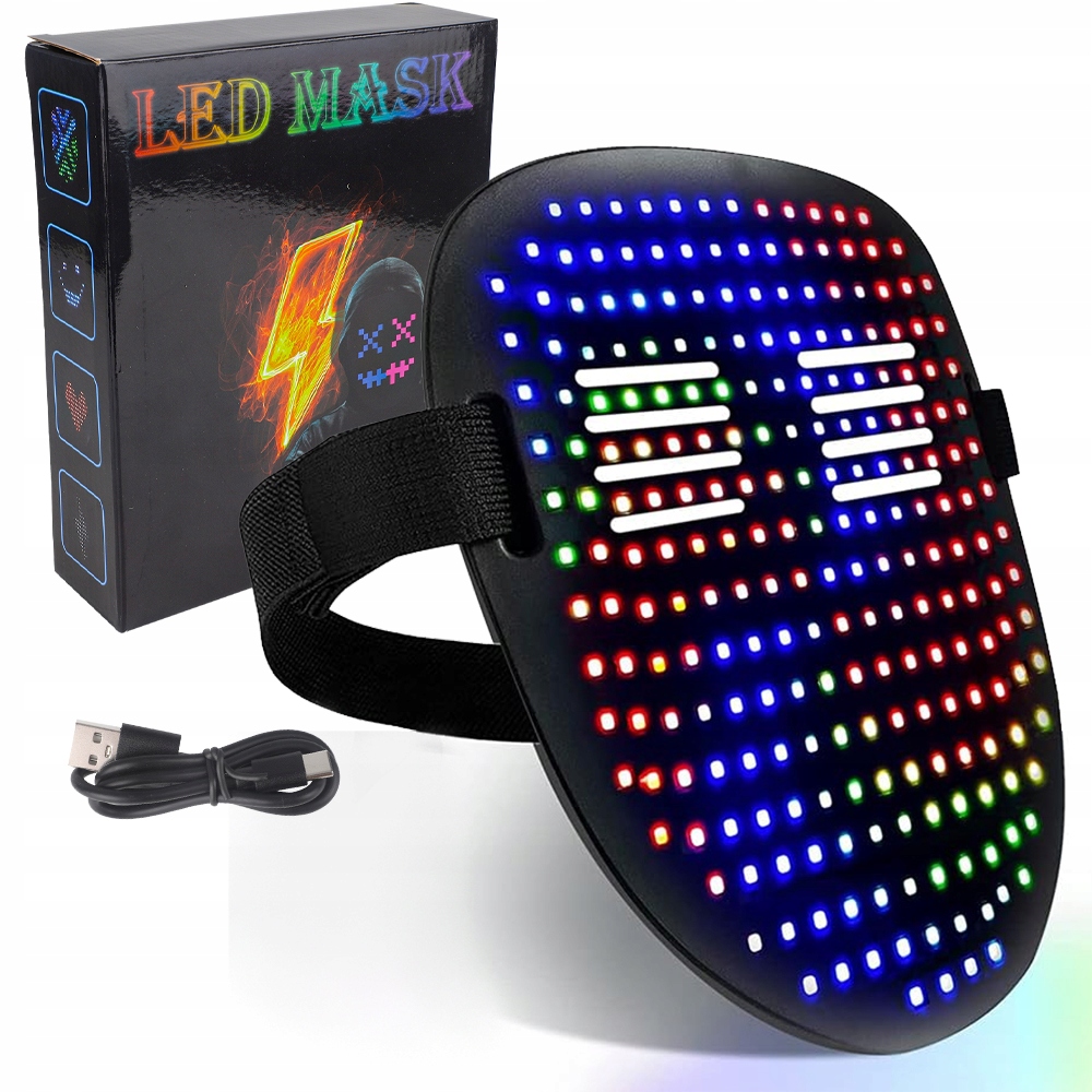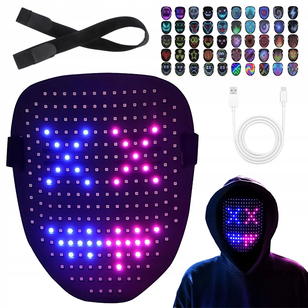 Z 25 dynamicznymi trybami wyświetlania i 25 statycznymi obrazami wyświetlania, maska led może być ustawiona na pojedynczy kolor, błysk, gradient, gładki i wielokolorowy, błysk, gradient, gładki.