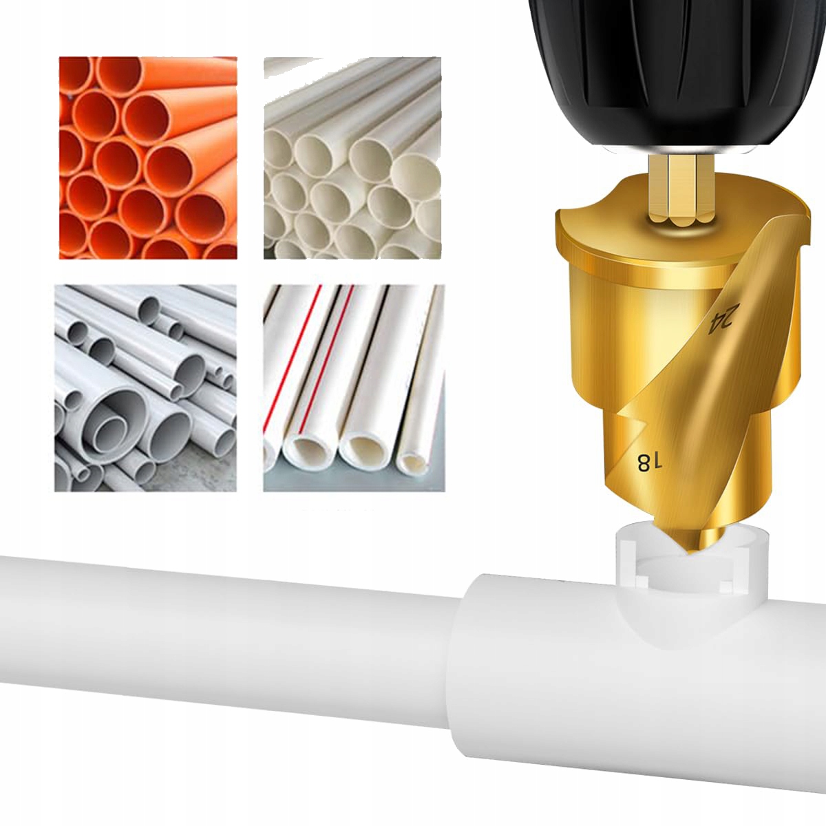 Wiertła dopasowane do najczęściej używanych rur: 19 / 24 / 31 mm.