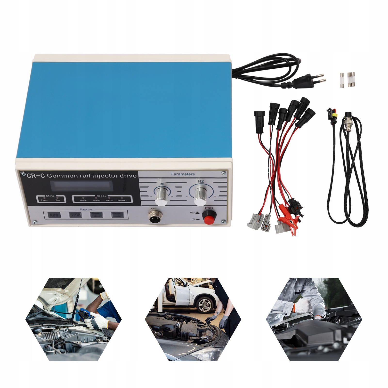 Produkt nadaje się do testowania wtryskiwaczy BOSCH, DENSO, DELPHI i innych elektromagnetycznych. Jest to tester służący do testowania i naprawy wtryskiwaczy samochodowych.