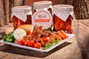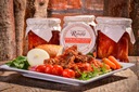 Pstrąg w zalewie korzenno pomidorowej - zalewa na bazie octu z lekką nutą korzennych przypraw. Jest to produkt dojrzewający, który najlepsze walory smakowe osiąga po ok. 30 dniach. Jest wspaniałą przekąską na zimno i doskonałym, pełnowartościowym daniem na ciepło.