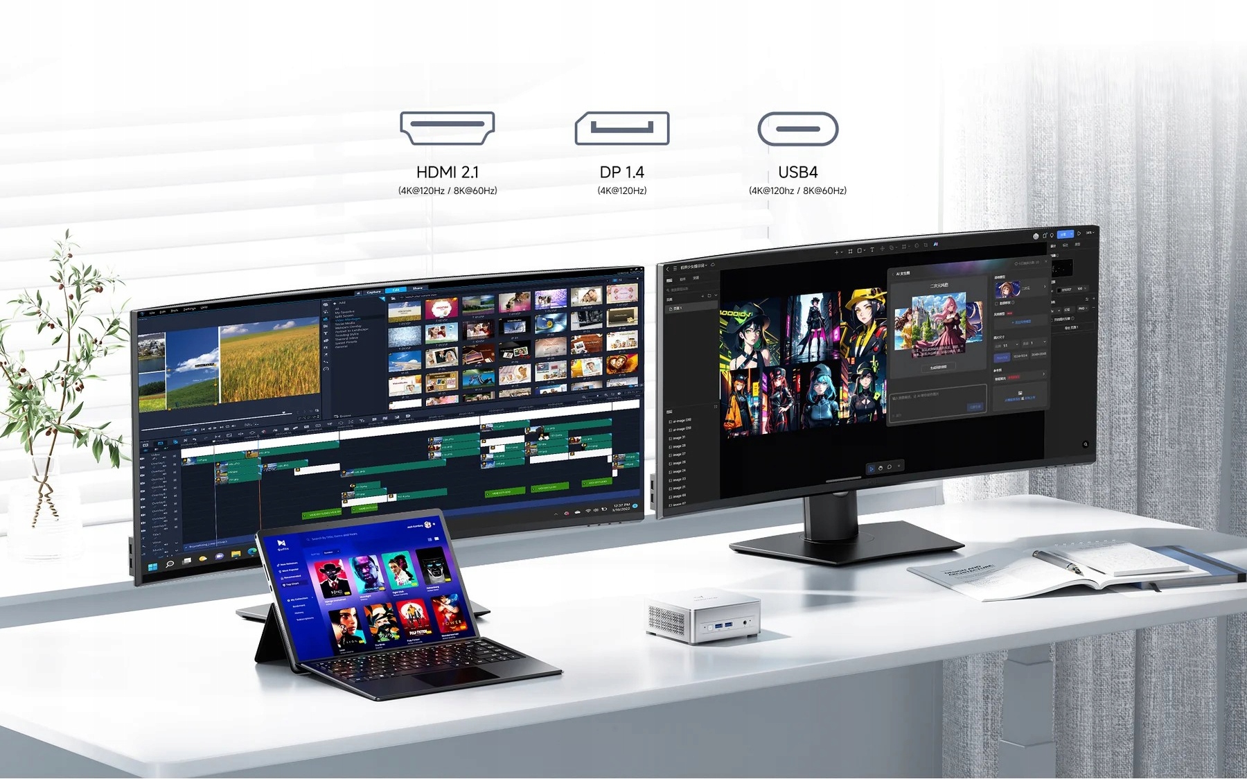 Komputer umożliwia podłączenie trzech ekranów w tym samym czasie – przez HDMI, DisplayPort i USB-C z obsługą obrazu. To idealne rozwiązanie do pracy wielozadaniowej, montażu wideo, grafiki czy wygodnej obsługi wielu aplikacji naraz.
