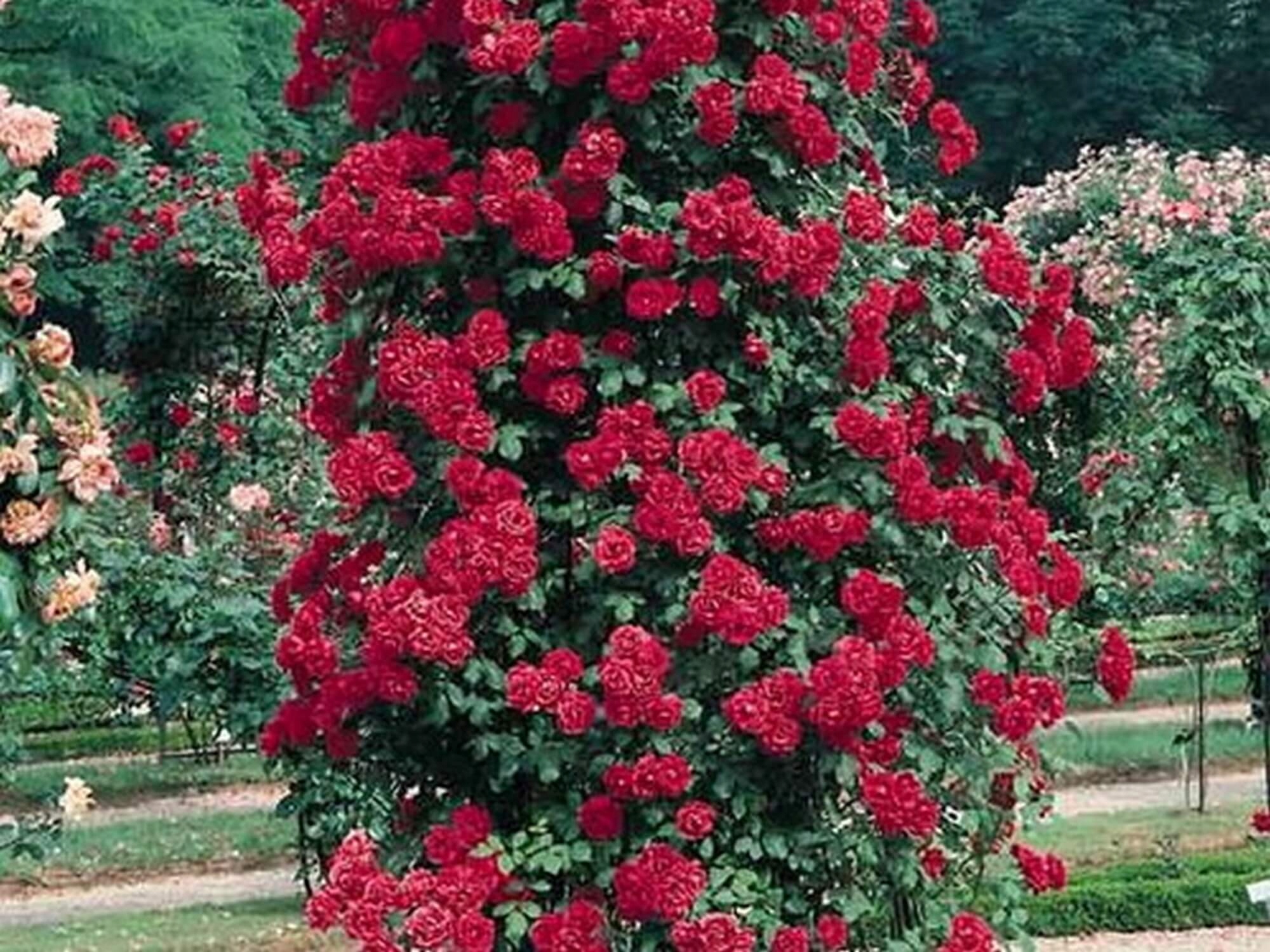 Róża ‘Paul’s Scarlet’ może stanowić przepiękną ozdobę różnego rodzaju łuków i altan. Swoją intensywną barwa ożywia ogród. Nie sposób przejść koło niej obojętnie.