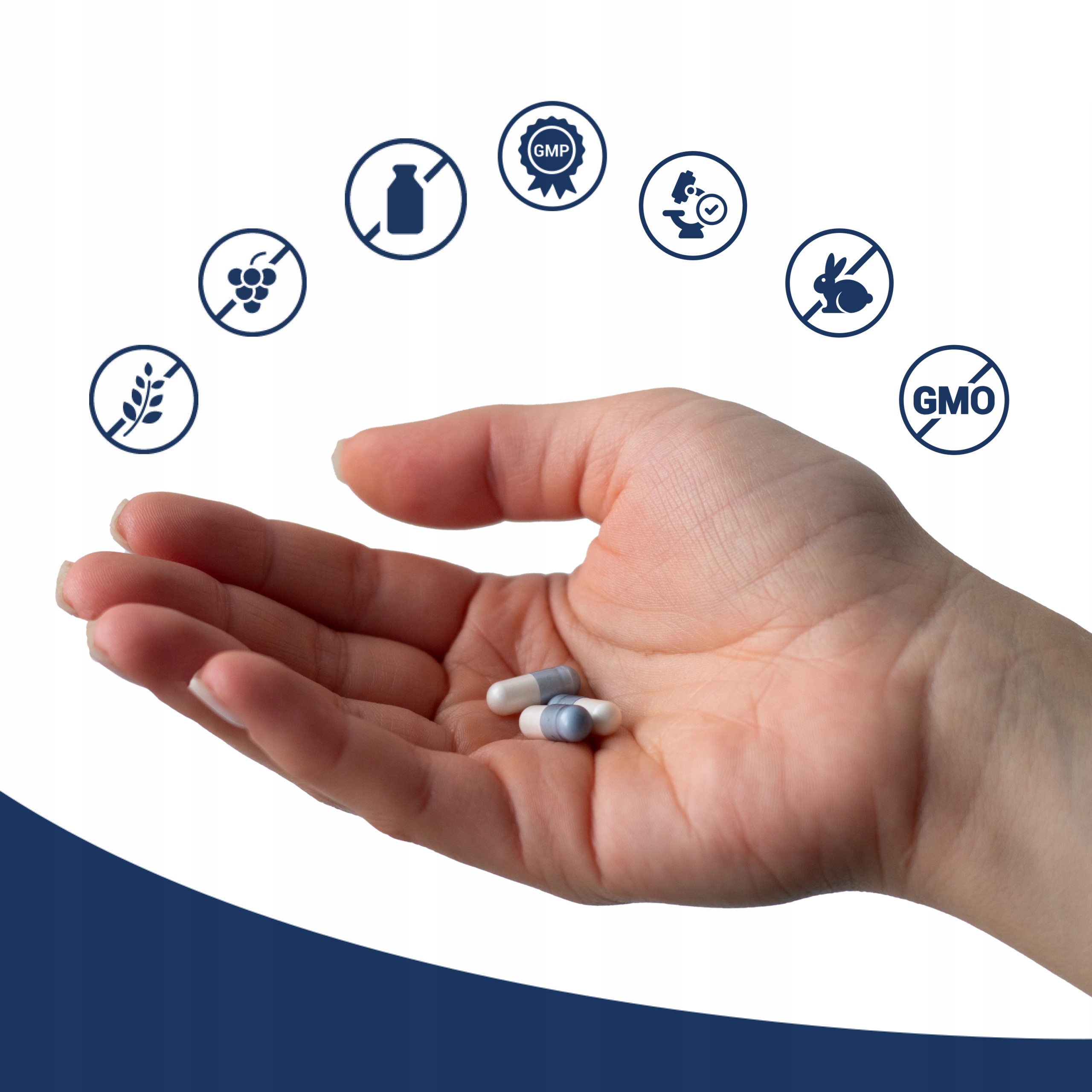 ✅ Gwarantowana stabilność: aby unikalne szczepy bakterii dotarły do Państwa w nienaruszonym stanie, każda kapsułka jest umieszczona w specjalnie zaprojektowanym podwójnym aluminiowym blistrze. W innych opakowaniach, takich jak szkło czy plastikowe pudełka, szczepy bakterii często nie są wystarczająco chronione przed wilgocią.