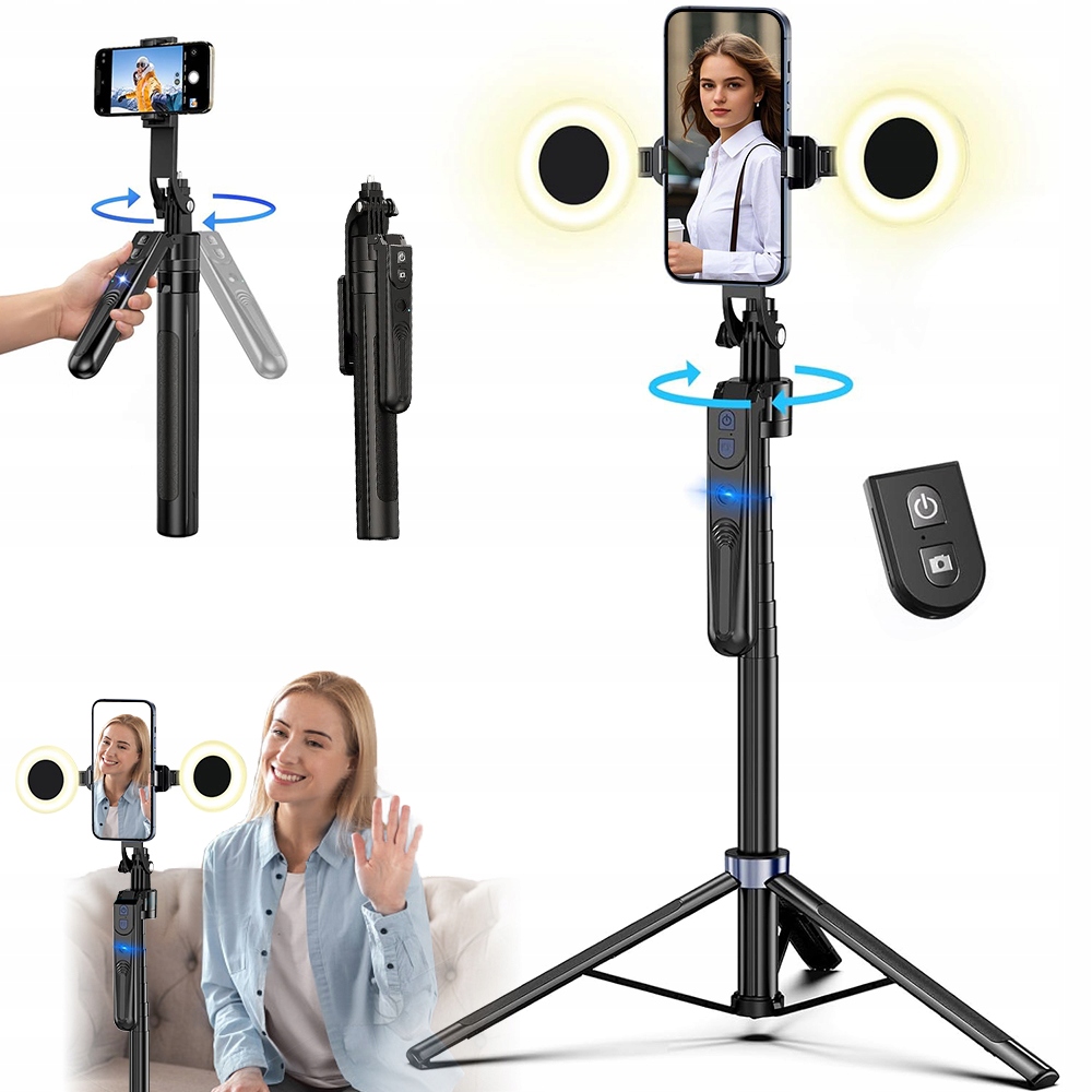 Statyw do selfie z niezależnym pilotem. Pilot zdalnego sterowania można ładować cyklicznie, co zmniejsza potrzebę wymiany baterii. Zasięg połączenia bezprzewodowego wynosi do 10 m. Naciśnięcie przycisku umożliwia wykonanie dowolnego zdjęcia z odległości do 10 metrów po ustawieniu kąta fotografowania.