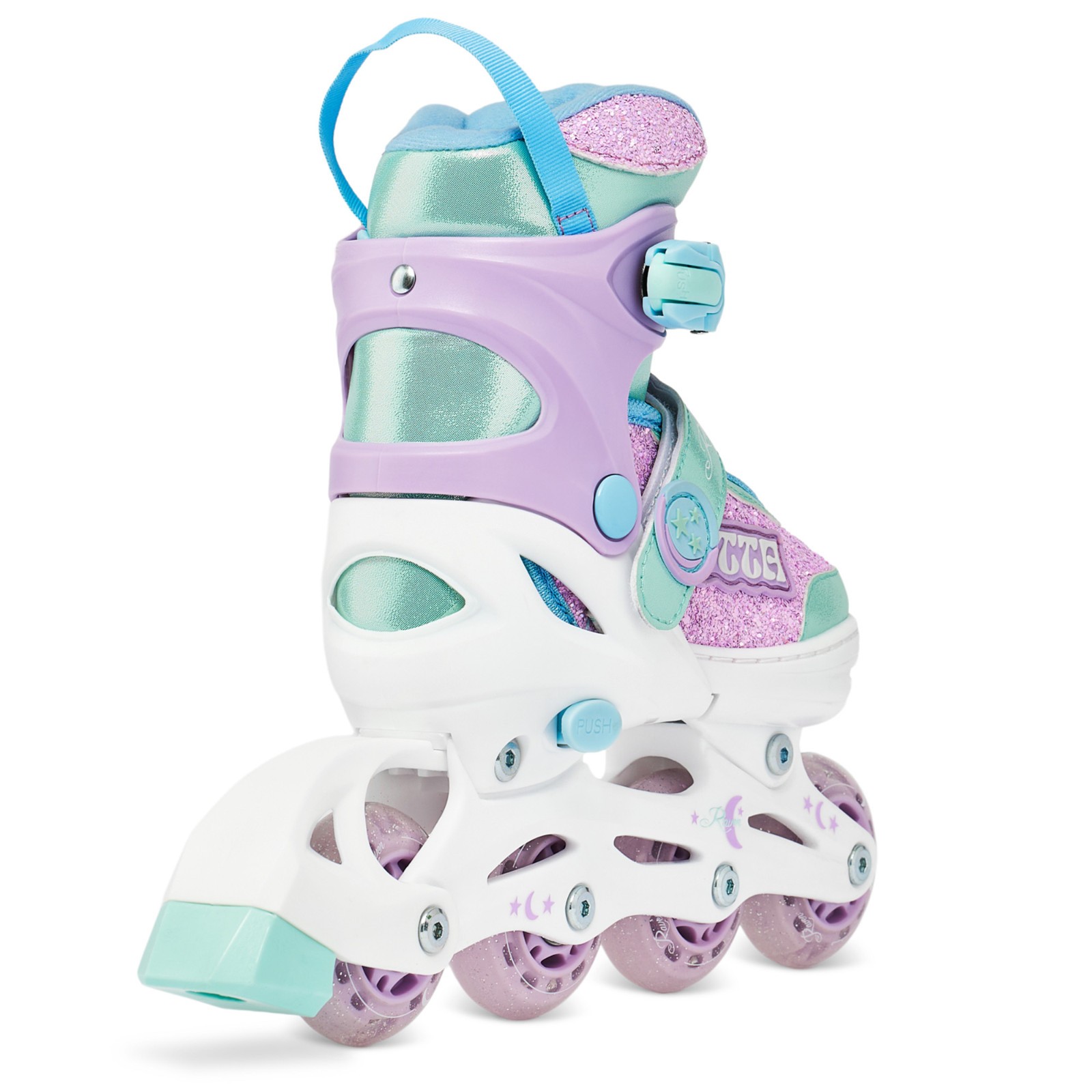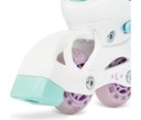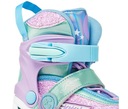 Do zmiany rozmiaru niepotrzebne są żadne narzędzia. Wystarczy nacisnąć przycisk i rozsunąć przednią skorupę buta. Dzięki temu rolki posłużą na wiele sezonów i zawsze będą dobrze dopasowane do rozmiaru stopy.