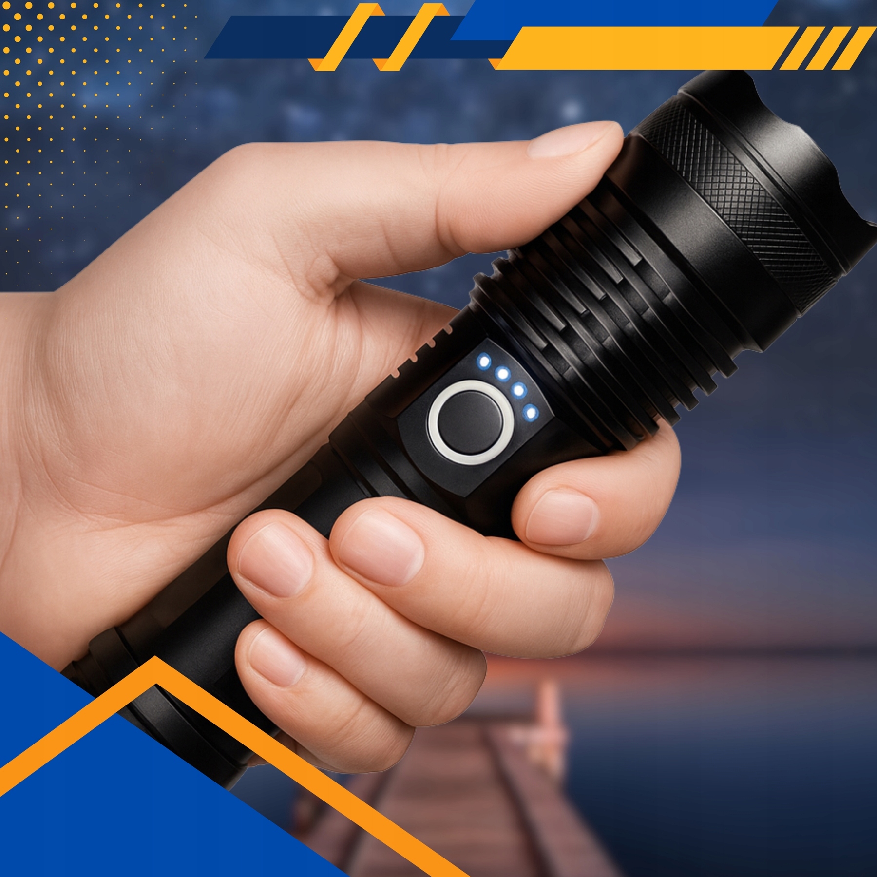 Supermocna latarka wyposażona w nowoczesną diodę XHP90 zapewnia niesamowitą jasność i daleki zasięg światła. Idealna do użytku wojskowego, survivalu, polowań, wędkowania czy codziennego zabezpieczenia w domu i samochodzie.