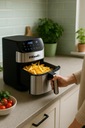 Umożliwia smażenie potraw bez użycia tłuszczu – przygotowywanie potraw odbywa się przy pomocy cyrkulacji gorącego powietrza. Dzięki temu potrawy są zdrowsze, mają mniej kalorii a poziom tłuszczu spada nawet o 95%.