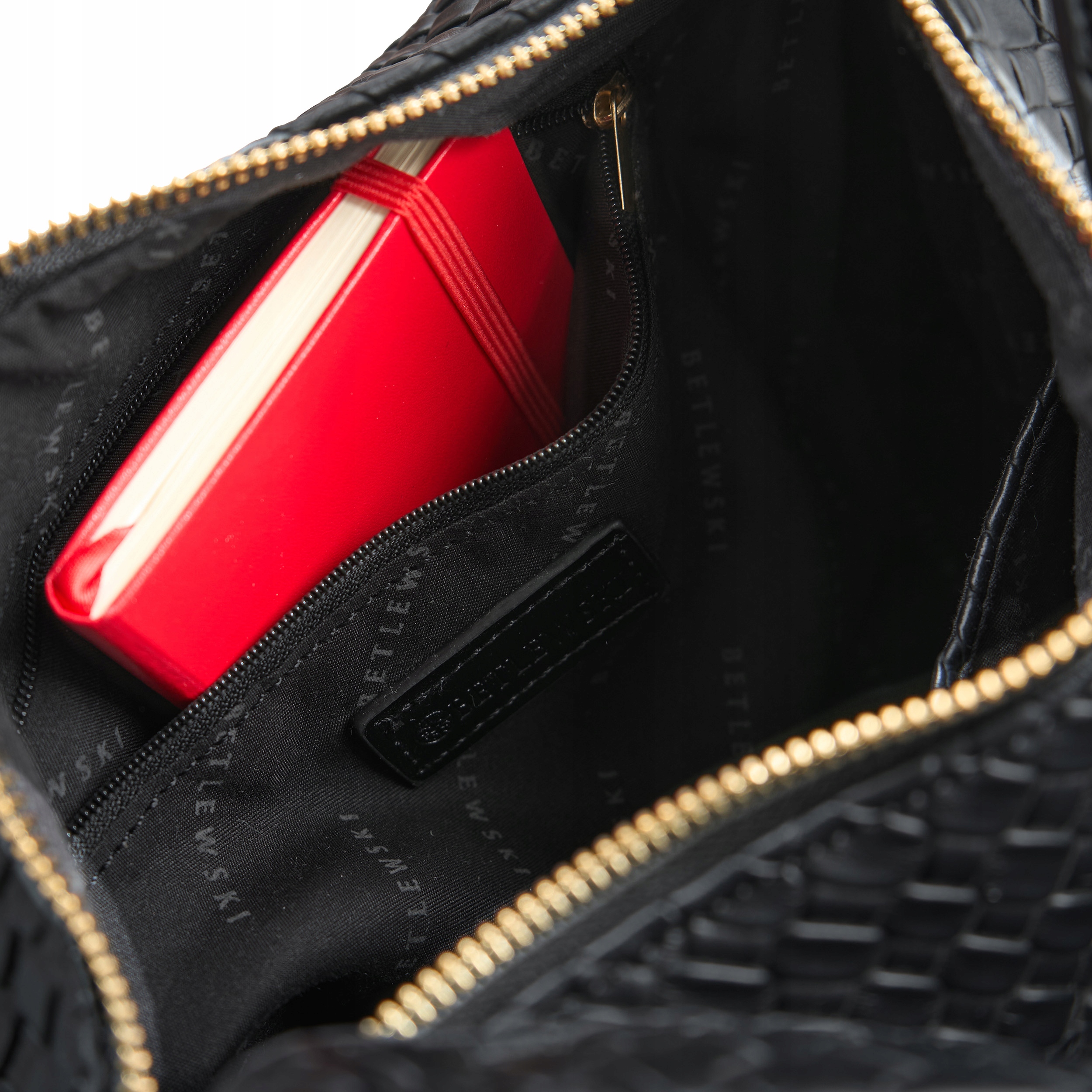 Subtelne, złote okucia oraz minimalistyczne logo BETLEWSKI® pięknie komponują się z fakturą plecionki. To właśnie te detale sprawiają, że torebka nabiera wyjątkowego, wyrafinowanego stylu. Doskonale dopełni eleganckie stylizacje, ale z powodzeniem uzupełni również casualowe zestawy.