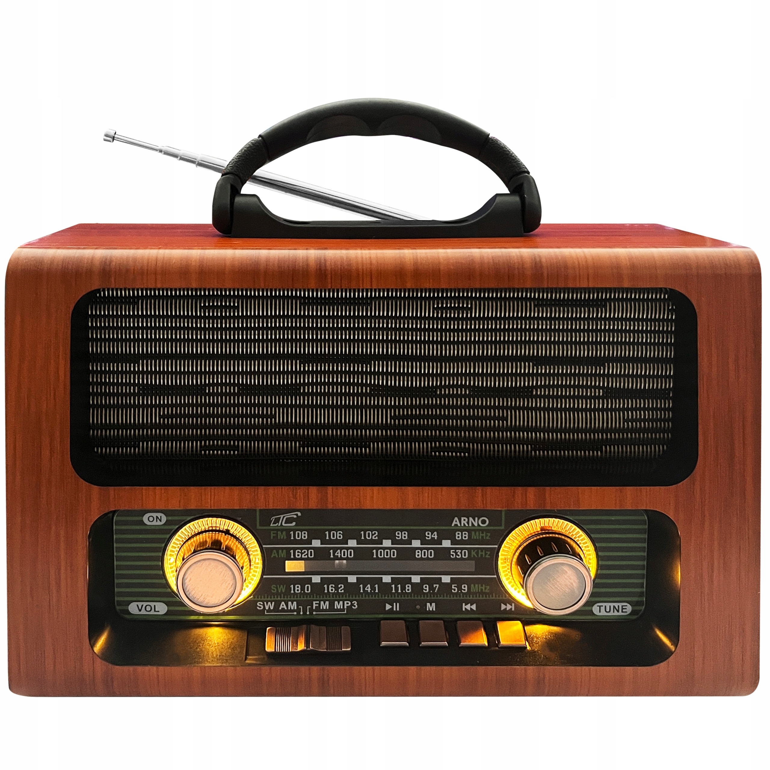 Радио Нида сильно привлекает со стилистикой устройств ретро. Складная ручка komplementujący конструкция агрегата позволяет удобно переносить радиоприемник с места на место. Удобная транспортная развязка в сочетании с компактной формой устройства, что делает это радио может Вам сопровождать вас везде — на прогулке, пляже или выездах на лоно природы.