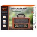 Kompaktowy radioodbiornik z teleskopową anteną i łącznością Bluetooth, nawiązujący stylistyką do urządzeń retro.