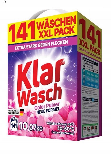PROSZEK DO PRANIA KLAR WASCH KOLOR 10,07KG NIEMIECKI NOWA FORMUŁA OPAKOWANIE XXL KARTON
