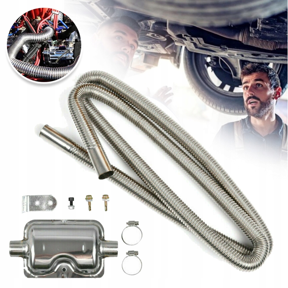 🚗【Pakiet】 1 szt. 300 cm rury wydechowej ze stali nierdzewnej 2 szt. klipsów 1 szt. tłumika 1 szt. podkładek dystansowych 3 szt. śrub. Idealny do ogrzewania postojowego z silnikiem wysokoprężnym, może być używany jako przedłużenie wydechu w generatorze. pasuje do większości generatorów portów wydechowych o średnicy 2,5 cm, aby przedłużyć wydech z szopy dźwiękowej.
