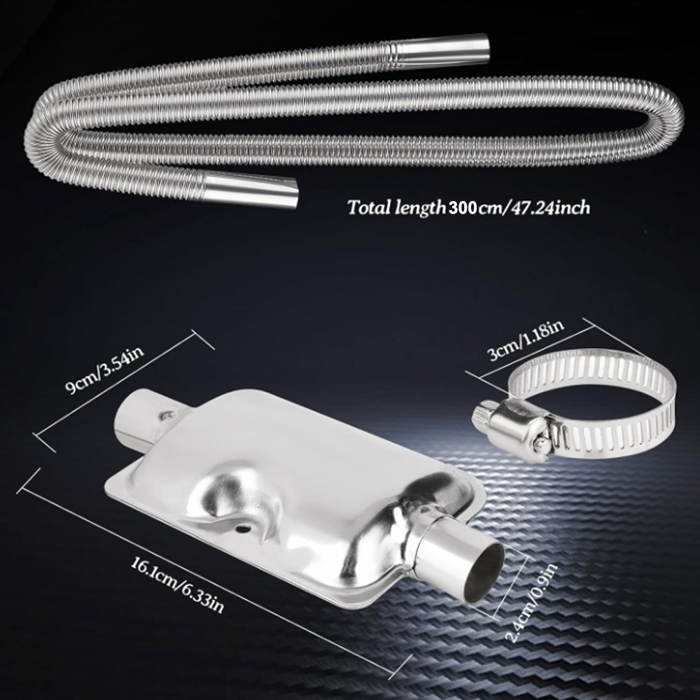 🚗【Łatwy w instalacji】 Bezpośrednio zastępuje starą lub uszkodzoną rurę wydechową nagrzewnicy samochodowej dwoma klipsami montażowymi, wystarczy zainstalować klipsy na rurze, a instalacja zajmuje tylko kilka minut. Może spełnić wymagania większości modeli rur wydechowych dostępnych na rynku.