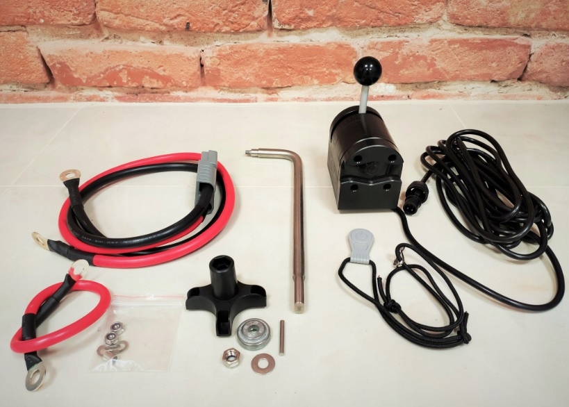 W tym modelu obrotami sterujemy za pomocą specjalnego kontrolera. Można go umieścić w wygodnym miejscu na jednostce. Płynna regulacja. Przesuwając dźwignię maksymalnie do góry silnik zostanie wyłączony. Długość kabla sygnałowego 4m.