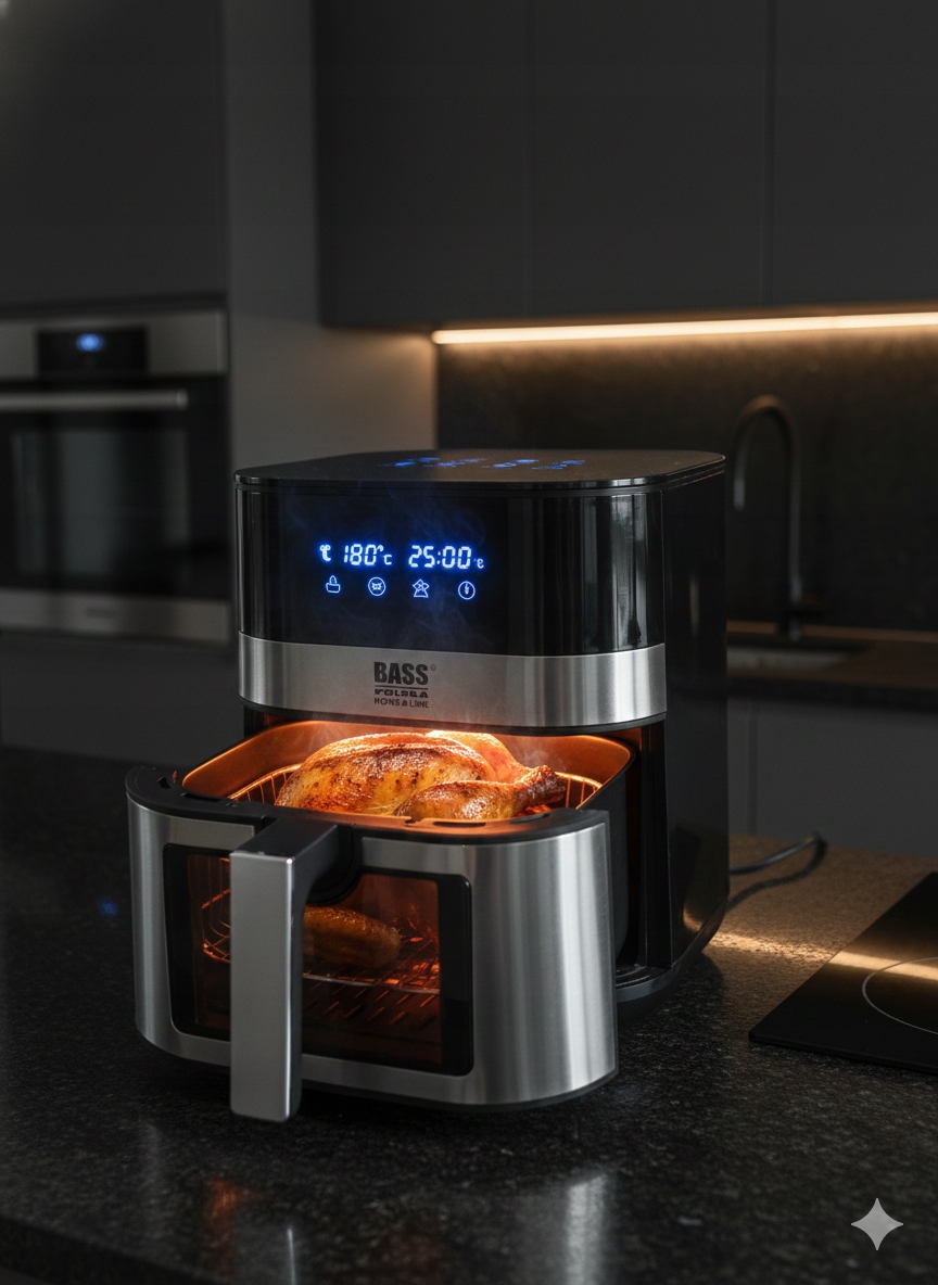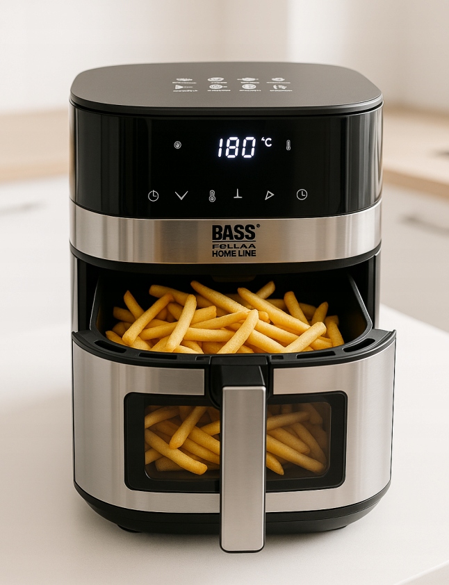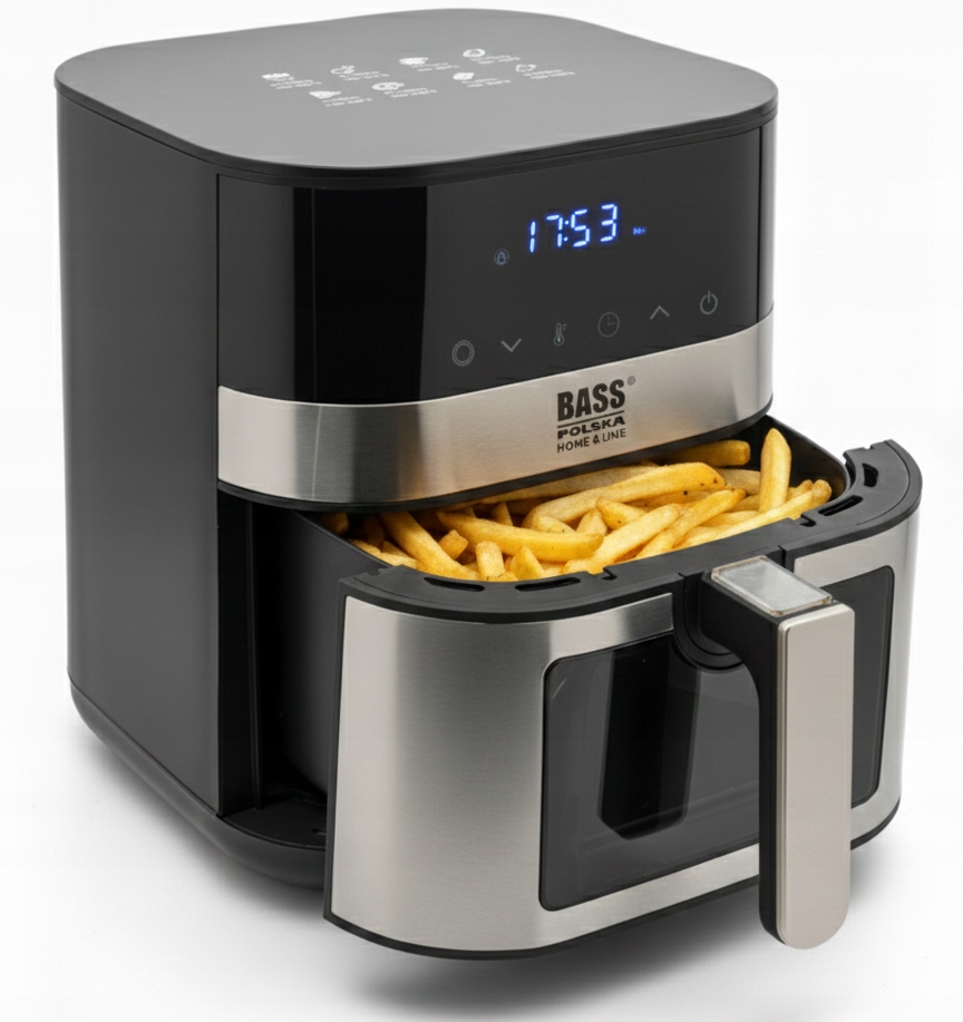 Air Fryer Bass Polska 5,5L to połączenie nowoczesnej technologii, wygody użytkowania i troski o zdrowie. Idealna zarówno do kuchni domowej, jak i małej gastronomii.