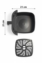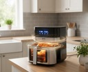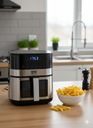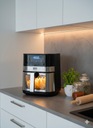 Dzięki cyrkulacji gorącego powietrza uzyskasz chrupiący efekt jak z piekarnika lub smażenia, ale bez dymu, rozgrzewania całego piekarnika i nieprzyjemnego zapachu przypalonego tłuszczu. To idealne rozwiązanie do mniejszych kuchni i dla osób, które chcą gotować szybciej i zdrowiej.
