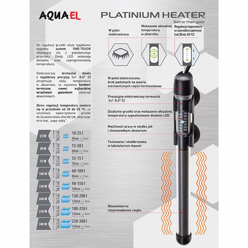 Nowa generacja szklanych grzałek do akwarium wyróżniająca się elektroniczną precyzją termostatu.