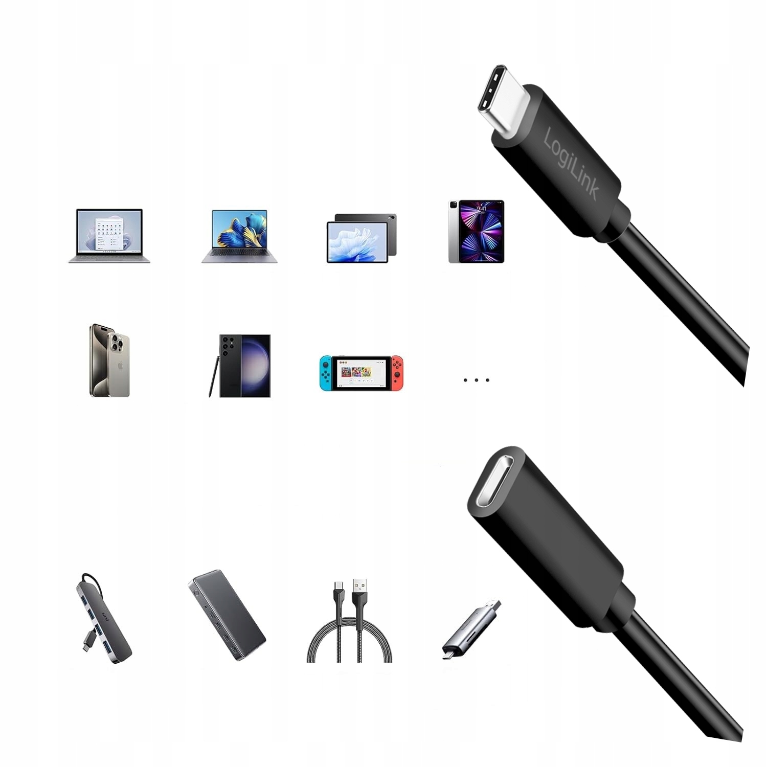 Czy przedłużacz działa z hubami USB-C i stacjami dokującymi?✅ Tak, kabel idealnie sprawdza się jako przedłużenie portów do zewnętrznych urządzeń takich jak docki, konwertery, huby USB-C.