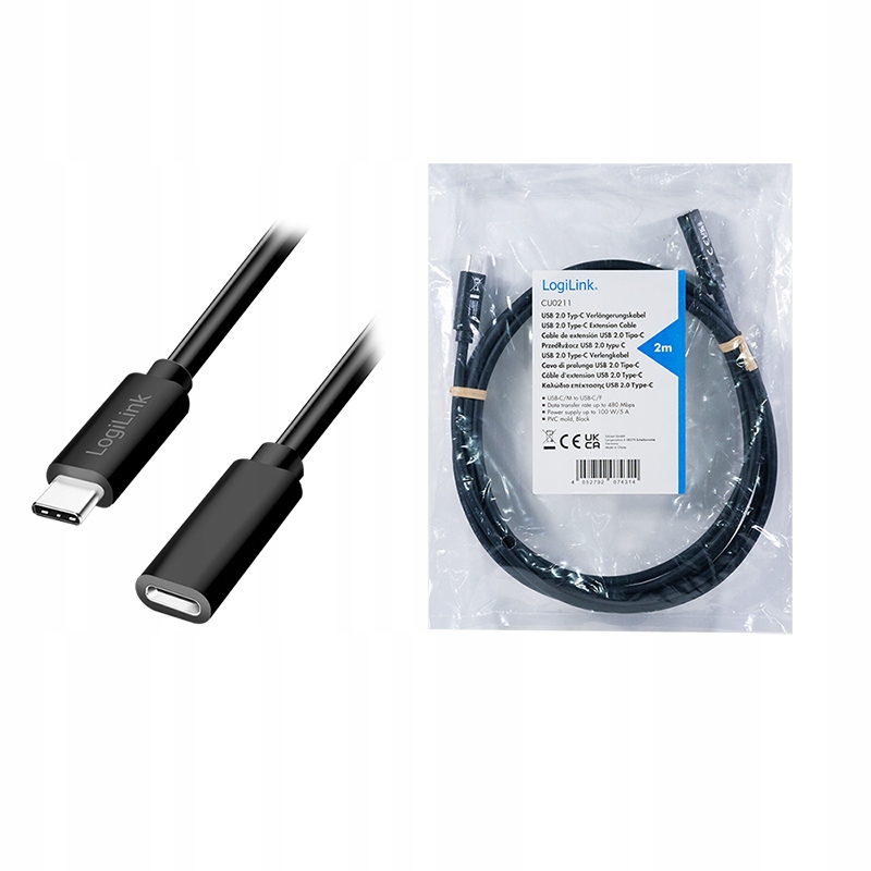 Przedłużacz USB-C 2.0 LogiLink o długości 2 metrów to niezawodne rozwiązanie do szybkiego ładowania i przesyłania danych. Obsługuje Power Delivery 100W i zapewnia prędkość transferu do 480 Mb/s, a dodatkowo chroni porty USB-C urządzeń przed zużyciem. Idealny do pracy z docking station, hubami, konwerterami i laptopami.